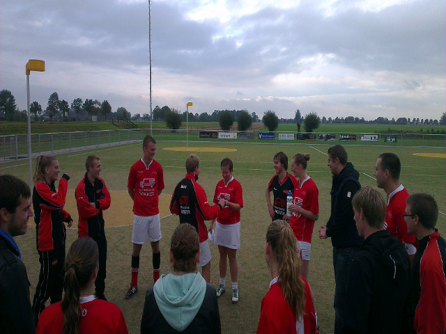 Geplaatst op:15-10-2014 Bijgewerkt op:15-10-2014 20:36 Luno - DVS '69Bron: Paul van AgthovenDe laatste wedstrijden van op het veld stonden dit weekend op het programma. De door Carrosserie Bakker gesponsorde selectie moest het opnemen tegen het onbekende DVS’69 uit Hendrik-Ido-Ambacht. Zowel bij het tweede als het eerste stonden de tegenstanders vooraf aan deze wedstrijd hoger op de ranglijst. En gezien de uitslagen wisten we dat het geen “makkie” ging worden. LUNO 2 begon goed met direct een doelpunt maar DVS scoorde daarna direct 2x zodat de stand lang 1-2 bleef. DVS had meer lengte in de ploeg en zeker na het uitvallen van Michael Brussel; wederom zijn knie, werd dit alleen maar meer. Toch wist de jonge LUNO ploeg zich in de wedstrijd te knokken. Waar het meestal de eerste helft beter gaat dan in de tweede was het dit keer andersom. Na een ruststand van 2-5 wist LUNO zich langzaam terug te knokken en uiteindelijk zelfs de gelijkmaker binnen te schieten vlak voor tijd: 10-10. Een zeer knappe prestatie, zeker na het uitvallen van Michael Brussel, later ook Laura Barten en op grote achterstand komen het vertrouwen behouden en een punt eruit gesleept! LUNO 2 heeft tot nu toe 7 punten gehaald en staat daarmee keurig in de middenmoot. Dan LUNO 1, vorige week helaas een punt verloren en ook deze week was nog steeds niet iedereen 100% fit. Gelukkig zorgde Daisy van Dockum ervoor dat er reden genoeg was om alle pijntjes te vergeten en vol voor de winst te gaan. Het was tenslotte haar laatste wedstrijd omdat ze door haar zwangerschap moet stoppen. Goed gemotiveerd begon LUNO dus aan de wedstrijd en het was Ella Elenbaas die haar eerste van de middag raak schoot 0-1, DVS antwoorde via een van de dames 1-1 en nam daarna de wedstrijd in handen. LUNO stond erbij en keer ernaar. Angstig in de verdediging, zonder vertrouwen in de aanval en DVS maakte dankbaar gebruik en liep uit naar 3-8! Gelukkig herpakte de ploeg zich kort voor rust zodat de schade enigszins beperkt bleef. Ruststand 7-9. In de rust werd er duidelijk verteld dat we onszelf veel te kort deden, we waren zeker niet minder dan DVS alleen geloofden we daar zelf niet in. De tweede helft stond er dan ook een heel ander LUNO, feller in de verdediging en met veel meer overtuiging werden de aanvallen neergezet. Tja en toen werd het een echte wedstrijd. Ella Elenbaas maakte weer de eerste 8-9 maar DVS kon het tot aan de 12-12 nog voorkomen dat LUNO voorkwam. Maar het was Rick Barten die ondanks zijn rugblessure de 13-12 erin schoot. Het geloof was er helemaal en je voelde dat we de wedstrijd konden winnen. DVS maakte weer gelijk 13-13. Dit ging zo de hele tweede helft door: 14-13 … 14-14 ….. 15-14 … 15-15 tot aan de 18-18. En het was uiteindelijk Rick Barten die met nog 2 minuten op de klok de 19-18 erin schoot. Met de laatste minuut van vorige week nog in ons heeft lukte het dit keer wel om de laatste minuut uit te spelen. De bal werd niet meer verloren en LUNO won als enige ploeg dit seizoen van DVS. Een super prestatie, er werd hard gewerkt en door verschillende spelers gescoord. Door deze overwinning staat het eerste met 10 punten knap op de tweede plek. En is de doelstelling van handhaven al zo goed als gehaald. De komende weken zorgen dat de blessures en pijntjes weg zijn om fris en fruitig aan het zaalseizoen te beginnen. Daisy van Dockum : Bedankt voor al die jaren van inzet en gezelligheid. Geniet van de komende periode en wie weet zien we je weer tussen de lijnen!
