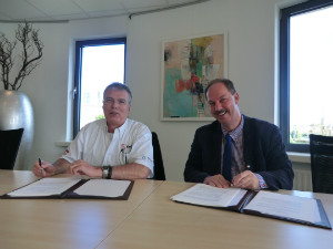 Geplaatst op:24-10-2014 Bijgewerkt op:24-10-2014 13:47 Eerste kavel Kop IJsselveld verkochtBron: gemeente MontfoortWethouder Jonkers en Kiremko zetten handtekening “U bent nu de eerste koper van een prachtig stuk grond op het nieuwe bedrijventerrein in Montfoort”, met deze woorden zette wethouder Jonkers zijn handtekening onder de koopovereenkomst met Kiremko. De heer Oosterlaken van Kiremko bevestigde dit door ook zijn handtekening te zetten. Met de verkoop van circa 1,2 ha. grond is een aanzienlijk deel van Kop IJsselveld nu verkocht. Kiremko ontwerp, produceert en installeert complete proceslijnen voor de aardappelverwerkende industrie en is een echt Montfoorts bedrijf. De groeipotentie van het bedrijf is op de huidige locatie niet mogelijk. “Gelukkig kwam daar een kans in Kop IJsselveld voorbij. Voor ons dé mogelijkheid om én te groeien én te blijven in Montfoort. Een win-win situatie wat ons betreft.” Ook wethouder Jonkers is blij dat Kiremko de eerste kavel gekocht heeft. “Voor ons is het van groot belang dat een betrokken en écht Montfoorts bedrijf hier kan blijven groeien. Dit is niet alleen belangrijk voor de werkgelegenheid in onze gemeente, maar ook voor de maatschappelijke betrokkenheid van het bedrijfsleven in de gemeente.” |  Ondertekening Kop IJsselveld (foto gem. Montfoort) | Veel interesse in modern bedrijventerrein De verkoop van de eerste kavel is een belangrijke stap in de ontwikkeling van het nieuwe bedrijventerrein Kop IJsselveld. “Met de verkoop geven we een krachtig statement dat het project nu echt van start gaat. We gaan hier met elkaar een prachtig en modern bedrijventerrein realiseren.” De gemeente is momenteel met diverse geïnteresseerden in gesprek. Zowel Montfoortse bedrijven als bedrijven uit de regio hebben interesse getoond in de beschikbare kavels. Nog dit jaar wordt er gestart met het bouwrijp maken van de bedrijfsgrond. Vanaf mei 2015 kunnen de eerste ondernemers starten met de bouw van hun nieuwe bedrijfspand. De West Stichtse Ruiters zal in september 2015 van de locatie vertrekken. Kop IJsselveld Kop IJsselveld, dé springplank voor sterk en actief ondernemerschap in een vertrouwde omgeving. Op een gewilde locatie aan de Hollandse IJssel en gunstig gelegen vlakbij de A12 ontwikkelt de gemeente Montfoort een uitbreiding van circa 2,9 ha. met kavels naar wens en een hedendaagse architectuur als visitekaartje voor de onderneming. Meer informatie leest u op www.kopijsselveld.nl. Meer informatie Voor meer informatie kunt u contact opnemen met de gemeente Montfoort via 0348-476400 of stuur een e-mail naar info@montfoort.nl.