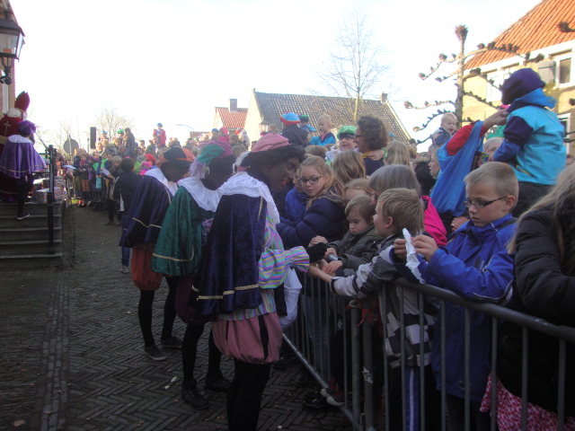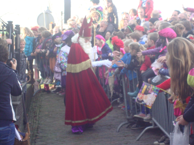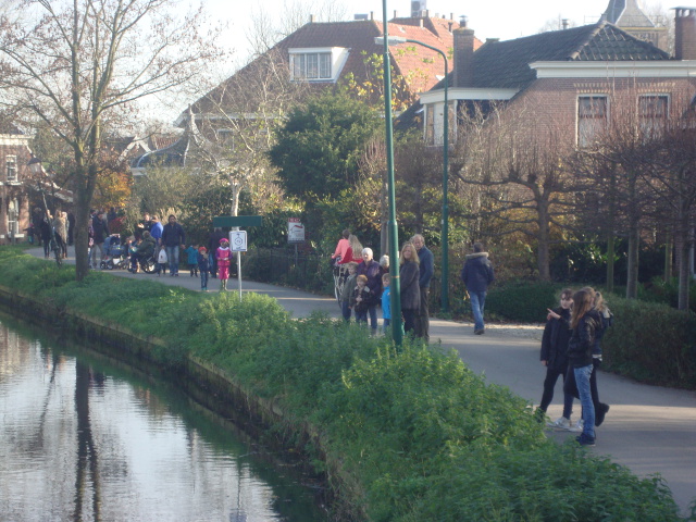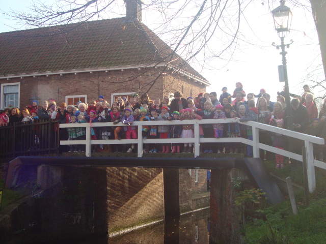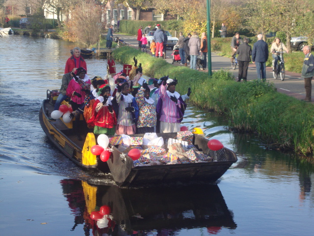 Sinterklaas en zijn pieten kwamen met de pakjes over de rivier de Linschoten naar de 5 decemberkade toe. Onderweg stonden er ook al heel wat kinderen te wachten op de komst van Sinterklaas en zijn pieten.