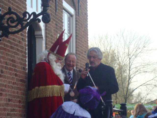 Uiteindelijk kwam de pakjesboot bij de 5 decemberkade aan en werd de Sint welkom geheten door de burgemeester. Hierna gingen alle kinderen en de pieten en Sinterklaas richting Sporthal "De Vaart".