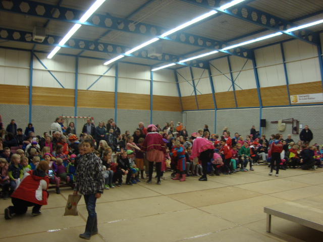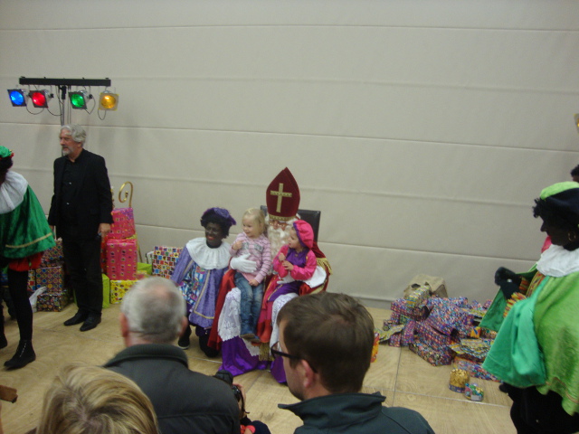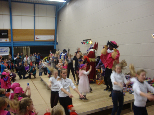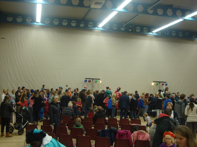 Na een korte tocht door het dorp kwam de hele stoet aan bij sporthal de Vaart. Daar werd er nog gezongen en gedanst. Daarna hadden alle kinderen de tijd om even op de schoot van Sinterklaas te zitten en kregen ze een leuk cadeautje mee.