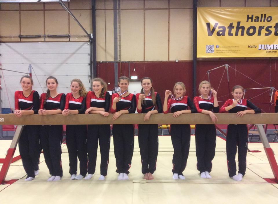 Het team niveau F bestond uit Kiki van Dijk, Anne Versloot, Ella Holleman en Anne de Vos. Het was een echte testwedstrijd voor de turnsters. Onderdelen op de brug werden met succes geturnd en de nieuwe oefeningen op de balk werden voor het eerst laten zien. Het leverde hen een score van 123.450 punten in totaal op. Goed voor een vierde plaats.
