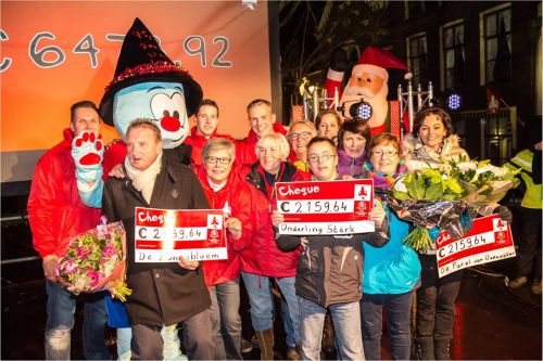 Geplaatst op:15-12-2014 Bijgewerkt op:15-12-2014 12:45 Radio Ooievaarsnest heeft ruim euro 6.400,- opgeleverd door drie Oudewaterse goede doelen.Bron: Harold BroekhuizenZaterdag 13 december om 22.00 uur was de grote finale van Radio Ooievaarsnest op de Markt van Oudewater. Drie dagen lang konden inwoners verzoekplaten aanvragen tegen betaling. De eerste editie van het glazen huis in Oudewater bleek een groot succes. De actie heeft uiteindelijk € 6.478,92 opgeleverd voor drie plaatselijke goede doelen! Bestuursleden van Stichting de Parel van Oudewater, Onderling Sterk en de Zonnebloem afdeling Oudewater ontvingen ieder uit handen van mascotte Ropey een cheque van € 2.159,64. Dit bedrag kan nog hoger worden, want op het moment van de bekendmaking waren nog niet alle euro's geteld. Bohemian Rhapsody van Queen populair Het laatste uur werden de tien meest aangevraagde platen gedraaid. De klassieker Bohemian Rhapsody van Queen bleek ook in Oudewater de populairste plaat onder haar inwoners. Vanaf maandag 15 december is de complete Top750 te beluisteren via Midland FM op 107.5FM of 98.3 via de kabel.