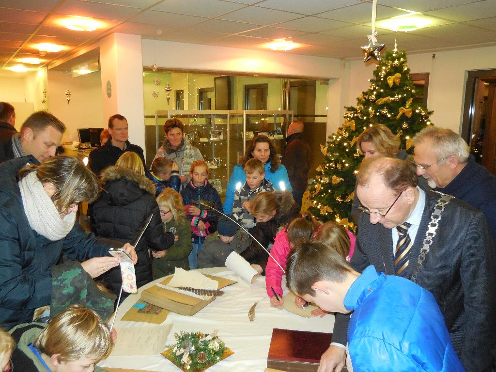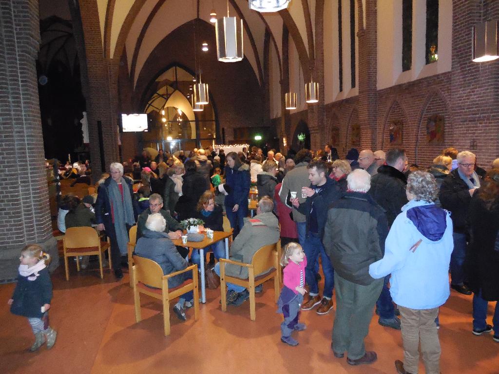 Geplaatst op:21-12-2014 Bijgewerkt op:21-12-2014 13:51 Herdertjestocht groot succesBron: redactie RSM Aad van der VeenOp zaterdagavond 20 december vond voor het eerst een herdertjestocht plaats in Montfoort. Deze door de oecumenische werkgroep georganiseerde tocht startte bij De Rank. De opkomst was zo gigantisch groot, dat er al snel lange rijen ouders met hun kinderen stonden te wachten om in groepjes van ongeveer 40 mensen de tocht te kunnen maken. Langs de gehele route waren glazen potjes met waxinelichtjes geplaatst. Deze ging via het kleine Bospad naar de Achterbaan. Daar was de 1ste uitbeelding van Jozef en Maria. Daarna ging het via de Vrouwenhuisstraat naar de Achterstraat. Daar kondigde de stadsomroeper ( Ad Vergeer) aan dat het tijd was dat Jozef en Maria moesten vertrekken. Daarna ging het naar het stadskantoor, waar men (zonder afspraak) een handtekening kon zetten met een echte ganzenveer in bijzijn van de burgemeester. Daarna werd de tocht vervolgd tot aan de poort bij het kasteel. Daar probeerden Jozef en Maria samen met de ezel een plaatsje voor de nacht te verkrijgen, maar helaas tandarts Vink was dicht en ook de familie Voet had geen plek. Tenslotte konden ze terecht bij de SWOM. Daarna ging het via het atrium van het Antonius, waar Marcello prachtige kerstliederen zong. Via de Bongerd waar Zwup stond te spelen met een aantal herdertjes bij een kampvuur, ging het naar de molen, waar een engel de geboorte van Jezus aankondigde. Hierna via de Achterdijk naar de kerk Joh. De Doper, waar iedereen een warm welkom kreeg, door herauten, engelen en een kribbe met Jozef, Maria en hun jong geborene. Een avond om niet te vergeten en hopelijk wordt het een traditie voor Montfoort.