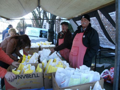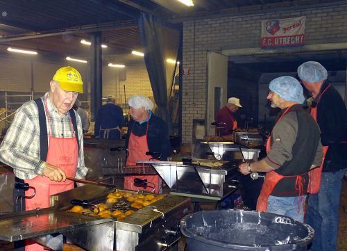Geplaatst op:31-12-2014 Bijgewerkt op:01-01-2015 15:03 Het mannenkoor “Zanglust “ bakt oliebollen en appelflappen.Bron: Cor Verschuur9.000 Appelflappen, 20.000 oliebollen, de mannen en vrouwen van mannenkoor Zanglust hebben het weer voor elkaar gebokst Zij bakken al 20 jaar in de nacht van 30 op 31 december. Kisten met rozijnen en krenten verdwenen in de deegmachine samen met zakken meel en pakken gist. Daar kwamen dan die heerlijke oliebollen uit voort! Linschotenaren en Montfoorters kochten de oliebollen van het mannenkoor.. Cees maakt het beslag. De ingrediënten. Bakken maar, nog 20.000