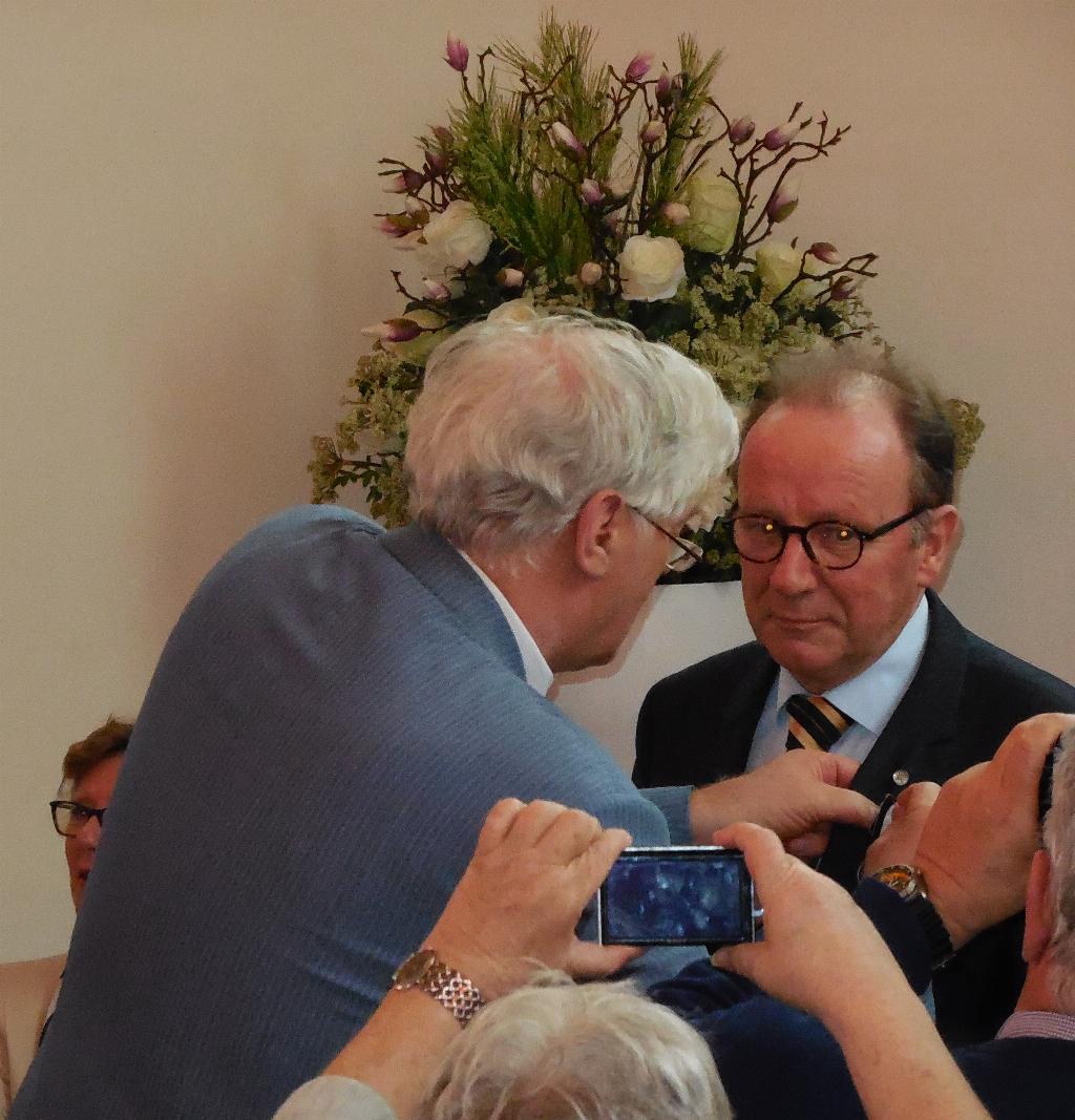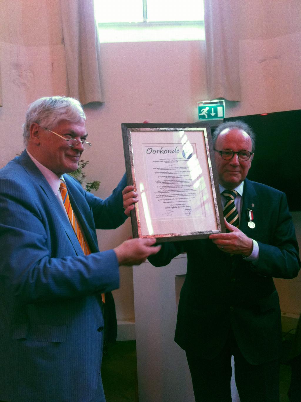 Geplaatst op:26-03-2015 Bijgewerkt op:26-03-2015 20:57 Bert Jansen ereburger van MontfoortBron: gemeente MontfoortErepenning opgespeld gekregen tijdens zijn afscheid Tijdens de Buitengewone Raadsvergadering ter ere van zijn afscheid is burgemeester Bert Jansen benoemd tot ereburger van de gemeente Montfoort. Hij werd daarbij geroemd om zijn hart voor het verenigingsleven, zijn oog voor de historische waarde van onze gemeente en zijn inzet voor de gemeente Montfoort. “Een titel die aantoont wat voor burgemeester u bent geweest, een burgemeester met hart voor de samenleving, een benaderbare man, een burgervader bij incidenten in de samenleving, een man met een tomeloze energie en betrokkenheid voor onze inwoners, van jong tot oud.” Met deze woorden speldde locoburgemeester de heer Vlaar de oudburgemeester de erepenning op. Buitengewone inzet voor de gemeenschap Van 2002 tot 2015 was de heer Jansen burgemeester van de gemeente Montfoort. In die periode heeft hij zich ten volste ingezet voor het verenigingsleven. Jansen zag als geen ander de meerwaarde van een sterk verenigingsleven in onze hechte gemeenschap. Tijdens zijn periode als burgemeester heeft hij altijd oog gehad voor de historie van Montfoort en Linschoten. Tijdens zijn periode is de gemeente Montfoort een groot aantal monumenten rijker geworden, is er in het onderwijs meer aandacht gekomen voor de historie van de leefomgeving en heeft hij zich altijd dienstbaar opgesteld richting verenigingen met een hart voor geschiedenis. Erepenning De erepenning wordt slechts in zeer bijzondere gevallen toegekend als blijk van grote waardering en erkentelijkheid aan hen die zich in de gemeente Montfoort in hoge mate verdienstelijk hebben gemaakt. Het toekennen van erepenningen geschiedt door burgemeester en wethouders.