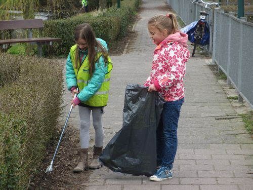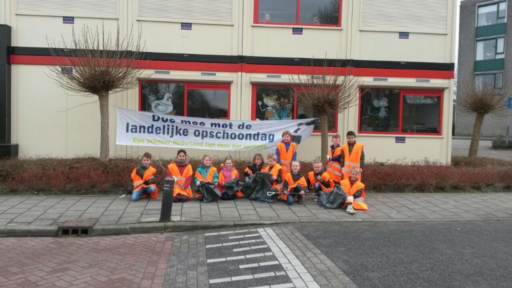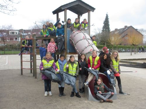 Geplaatst op:30-03-2015 Bijgewerkt op:01-04-2015 11:12 6 Basisscholen actief tijdens landelijke opschoondagBron: ZwerfvuilambassadeursAfgelopen zaterdag was het Landelijke Opschoondag. Op vrijdag 27 maart droegen maar liefst 6 basisscholen uit gemeente Montfoort hun steentje bij aan deze opruimdag. Over de dag verdeeld gingen kinderen van de diverse groepen van respectievelijk Het Kompas, KBs De Heeswijk, KBs De Howiblo, De Hobbitstee, Timotheüsschool en Prins Clausschool de wijk in om zwerfafval te rapen. De kinderen van groep 6 van de Hobbitstee hadden de wijk vanaf de Parklaan tot aan de Maarschalklaan als “werkgebied”. Na een uur waren al vele vuilniszakken gevuld. Wethouder Langerak hielp vrijdagmiddag groep 5 van de Prins Clausschool een handje. Samen zorgdragen voor een schone leefomgeving zowel voor mens als dier is heel belangrijk. Goed speuren naar afval in de struiken Bij KBs De Howiblo was groep 8 actief Groep 3 en 4 van KBs De Heeswijk maakten de school rondom de noodlocatie schoon