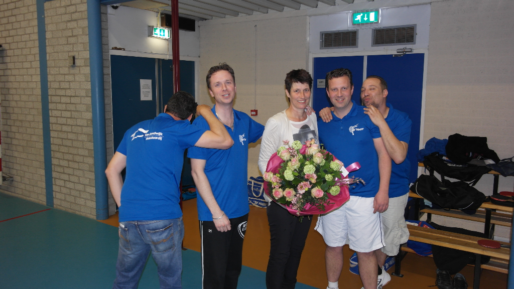 Geplaatst op:14-04-2015 Bijgewerkt op:14-04-2015 15:26 Drie teams De Vaart kampioenBron: Johan den HertogDe voorjaarscompetitie is voor de tafeltennissers van De Vaart goed verlopen. Drie van de vier teams werden met overmacht kampioen in hun poule en zijn gepromoveerd. De Vaart 1 was al de beste in de 4e klasse B en boekte tot slot in Amersfoort nog een 8-2 overwinning op Over 't Net 5. Theo van Diepen was de beste en won drie maal. Hiermee besloot hij de competitie met een 100% winst score. Maarten Benschop en Wim van Kesteren moesten in één speler hun meerdere erkennen en wonnen er ieder twee. Van Kesteren had hiervoor twee maal vijf games nodig en won de vijfde game elke keer met 13-11. Benschop won ook een keer met 11-9 in de vijfde game De Vaart 1 finishte met 75 punten uit 10 wedstrijden. In September gaat De Vaart het na een jaar weer proberen in de 3e klasse. De Vaart 3 won met 7-3 van concurrent Reflex 3 en behaalde zo met 75 punten het kampioenschap van de 6e klasse F. Jaap van der Bent was weer goed voor drie overwinningen, Leo Wenting won twee maal en Thijs Jostmeijer won er één. In de 6e klasse E won De Vaart 4 voor de vijfde maal met 10- 0 en werd zo met 79 punten kampioen. Ditmaal was ONI 5 het slachtoffer.
