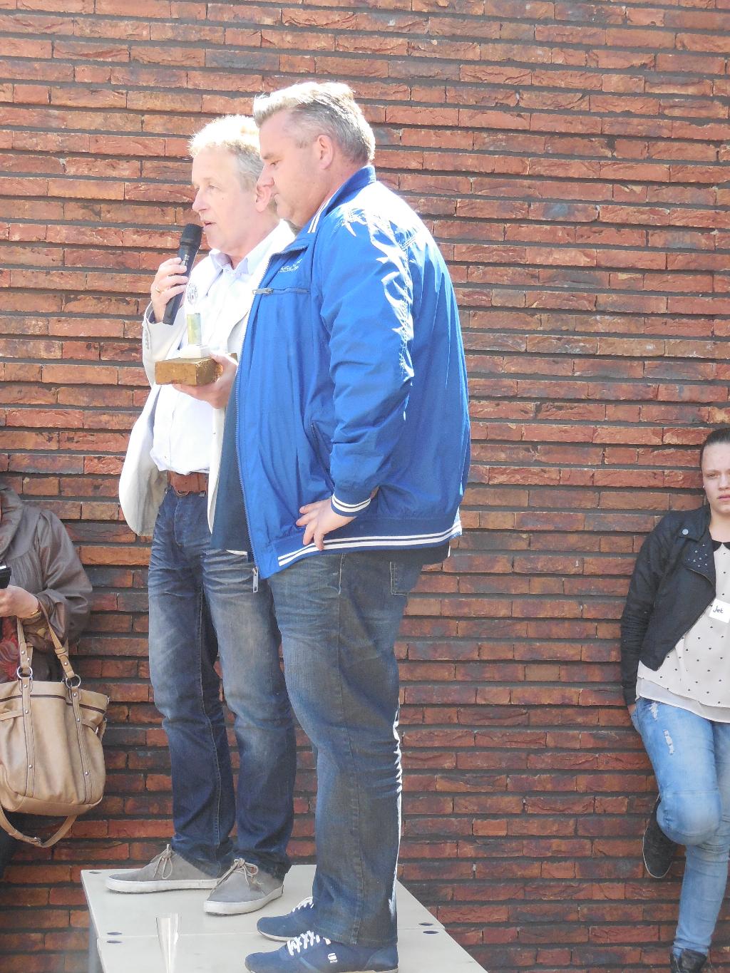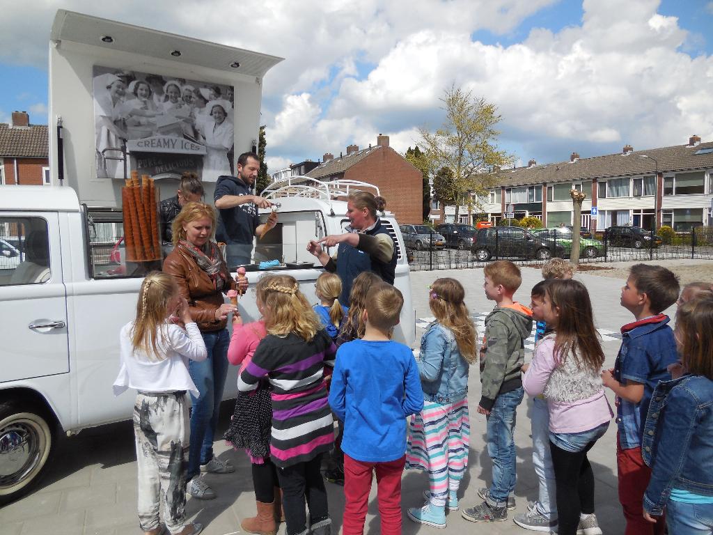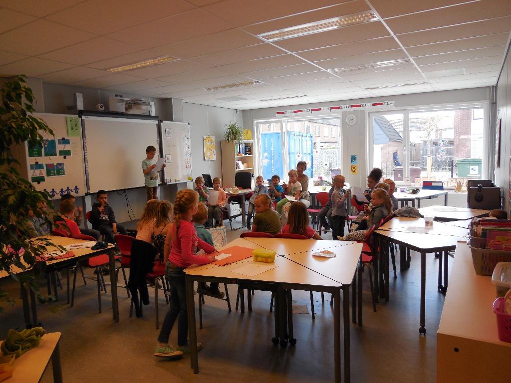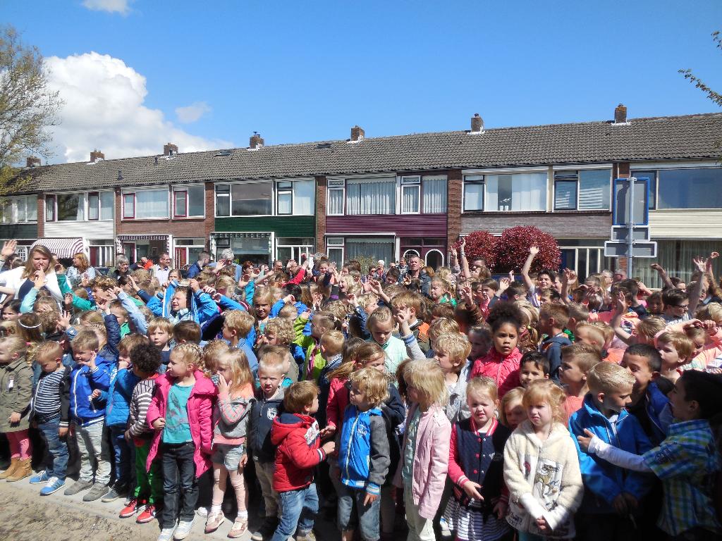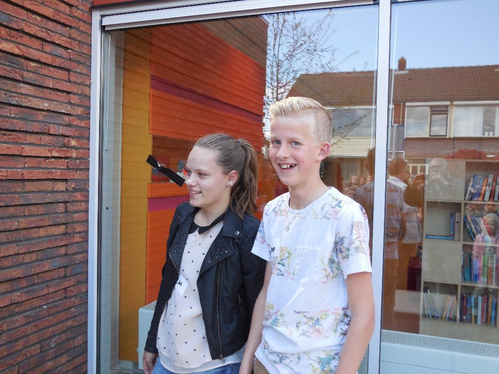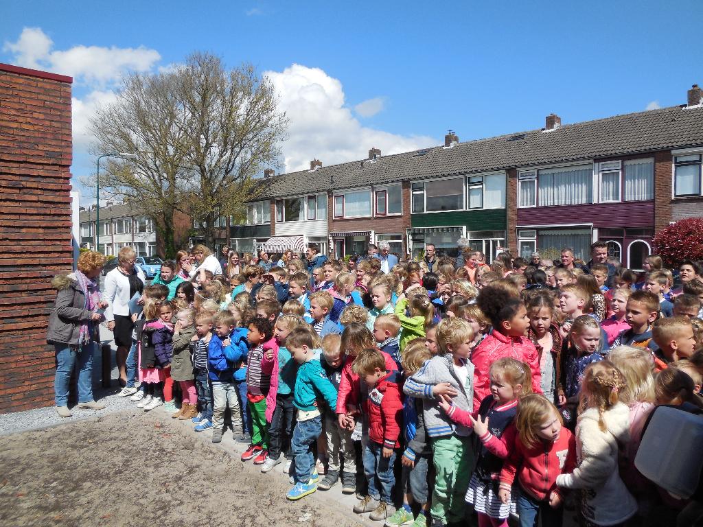 Geplaatst op:30-04-2015 Bijgewerkt op:30-04-2015 17:26 Opening HeeswijkschoolBron: redactie RSM Aad van der VeenNadat op 5 maart jongstleden de oplevering van de nieuwe Heeswijkschool plaats vond, was het op 30 april 2015 tijd om de school officieel te openen. Onder toeziend oog van alle leerlingen, veel ouders en genodigden heette de directeur van de beide scholen (Heeswijkschool en Howiblo) Anneke van der Waal iedereen welkom. Zij schetste in het kort de geschiedenis en de start van de bouw en spraak daarbij haar dank uit voor o.a. de gemeente, Kalisto (het overkoepelende orgaan van het katholieke onderwijs, voorheen genaamd SKSWW) de bouwonderneming en vele anderen. Hierna kreeg Hans Ranft, de locatiedirecteur het woord. Hij bedankte vooral de verhuisgroep o.l.v. Frank Leemans (een van de ouders) voor het vele werk wat zij hebben verzet. Zowel de verhuizing naar de tijdelijke locatie als de inrichting hebben zij voor hun rekening genomen. Dit ging vergezeld van een Gouden baksteen met beker, die officieel werd overhandigd aan Boas Kemp, die de eerste periode deze wisselbeker thuis mag bewaren. Als de school opnieuw verbouwd zal moeten worden over ong. 40 jaar, dient deze beker aan de nieuwe leerlingen te worden overgedragen. Op de steen stond de passende tekst “Alles voor de kinderen”.  |  | Nadat Job en Jet van groep 8, het officiële welkomstbord hadden onthuld, was het tijd om de school te bezichtigen. Ondertussen kregen alle leerlingen van groep 1 tem groep 8 een heerlijk ijsje. Alle ouders en ook de pers (door Rosalie en Luna) werden onder vakkundige leiding van leerlingen van groep 8 rondgeleid door de school. Een prachtig resultaat waar de gemeente maar vooral de leerlingen nog vele jaren met trots het basisonderwijs kunnen volgen.