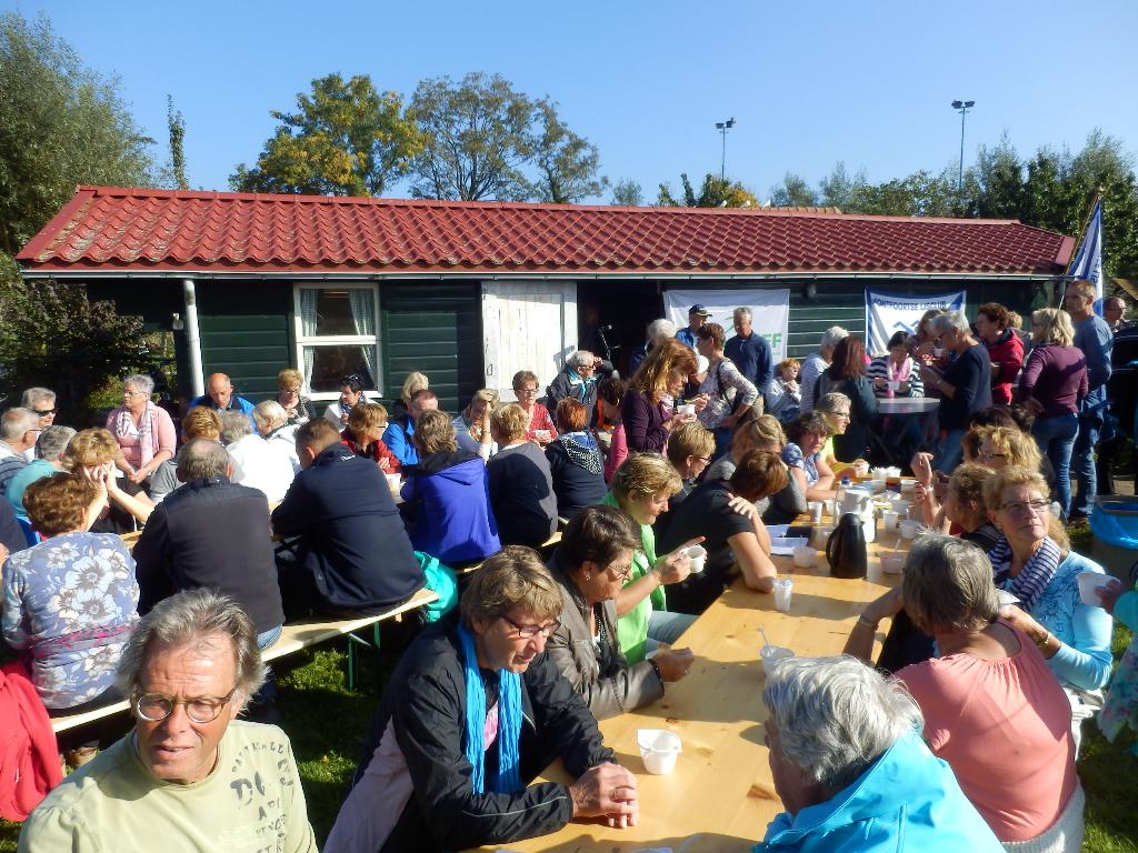 In de gezellige en zonnige ambiance aan de Montfoortse Grote Gracht werd al napratend, van de heerlijke soep genoten.