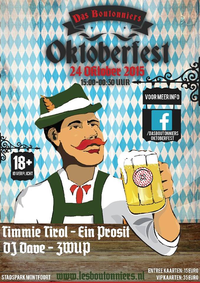 Geplaatst op:15-10-2015 Bijgewerkt op:15-10-2015 15:02 Das Boutonniers OktoberfestBron: A.BrugmansZaterdag 24 Oktober is het zover, Carnavalsvereniging Les Boutonniers zal een groots Oktoberfest neer gaan zetten in het Stadspark van Montfoort. Het belooft een fantastisch feest te worden waarbij Les Boutonniers de bezoekers vraagt om gekleed in Lederhosen of Dirndl naar de STAM tent te komen alwaar iedereen kan genieten van een feest in Duitse sferen. Gezeten aan lange feesttafels zal men kunnen genieten van een lekkere pul bier of van een (veel te zoete) Duitse witte wijn. Een frisdrankje mag uiteraard ook. De tent zal om 15.00uur open gaan en iedereen vanaf 18 jaar is van harte welkom. Wij zullen de middag rustig starten met muziek van DJ Dave en ook gaan wij het publiek op ludieke wijze vermaken met bierpul schuiven en spijker slaan. Om ca. 18.00uur zal de Duits getinte keuken open gaan en kan iedereen van een heerlijke maaltijd genieten . Tijdens het eten zal blaaskapel ZWUP de sfeer naar een nog hoger niveau tillen. In de avond rond de klok van 20.00uur zal DJ Dave worden afgewisseld door Oktoberfest DJ Timmie Tirol (De kleinste feest DJ van Europa) en iets later op de avond zal er een optreden zijn van Ein Prosit (Feestduo dat bekend is van hun show met de leukste oude en nieuwe Duitstalige Schlagers en Après-ski krakers). Na deze optredens zal DJ Dave tot even na middernacht gezellige feestmuziek voor ons allen draaien waarna het om ca. 0.30uur helaas weer afgelopen zal zijn. Toegangskaarten voor de avond kosten € 15,-- per stuk. Naast deze kaarten hebben wij ook zogenaamde VIP kaarten, deze kaarten zijn te koop voor € 35,-- per stuk. Met een VIP kaart ben je verzekerd van een goede plek aan een lange tafel, krijg je een eerste pul bier (of andere drank) bij binnenkomst, krijg je een maaltijd rond de klok van 18.00uur en is er de hele avond bediening aan de tafel. Lees op de website van Les Boutonniers hoe je aan kaarten kan komen ( www.lesboutonniers.nl ). Wij van Les Boutonniers hebben al heel veel zin in dit feest en hopen dat jullie dit ook zullen hebben. Dus tot 24 oktober tijdens "Das Boutonniers Oktoberfest".