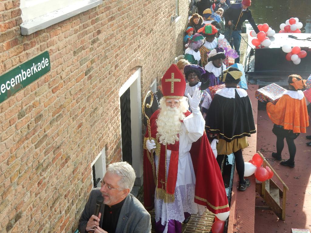 Nadat hij door vele kinderen langs de route en de toeterende auto's en vrachtwagens op de Reinaldaweg werd verwelkomd, kwam de Sint aan op de 5 decemberkade waar hij werd verwelkomd door de burgemeester en heel veel kinderen. Linfano en de Zwup kapel waren ook aanwezig om alles muzikaal te omlijsten.