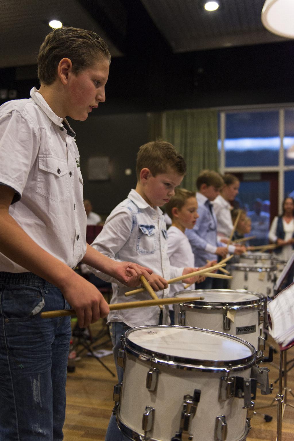 Geplaatst op:06-12-2015 Bijgewerkt op:06-12-2015 09:52 Zaterdag 12 december: Kids in ConcertBron: Martin Kolfschoten, foto's Marcel WalingaHet begint een traditie te worden, alweer voor de 4e keer organiseert muziekvereniging Ons Genoegen “Kids in Concert”. Alle muzikanten van Ons Genoegen jong en oud leveren een bijdrage aan deze muzikale dag. De dag start al om 10:00 uur in de Notenbalk, een nieuw stuk zal op de lessenaar worden gezet en o.l.v. Elivera van Sloten wordt er gerepeteerd op een voor de muzikanten nieuw muziekstuk. Diezelfde middag zal om 15:00 uur dit stuk uitgevoerd worden in het Atrium van het Antoniushof. Naast het oefenstuk zullen alle leerlingen in actie komen en solo of met meerderen tegelijk laten horen wat ze in huis hebben! Natuurlijk brengen ook het leerlingen orkest en de leerlingen drumband van Ons Genoegen verschillende nummers ten gehore. Leerlingen van Ons Genoegen krijgen les van ervaren muzikanten van Ons Genoegen, zo houden we de contributie heel laag en bieden we iedereen de mogelijkheid om muziek te leren spelen. Daarnaast kunnen leerlingen dus al snel doorstromen naar het leerlingen orkest/leerlingen drumband om zo al snel gezamenlijk muziek te maken. Dat deze manier van lesgeven succesvol is blijkt wel uit het feit dat dit jaar maar liefst 10 uit 10 leerlingen geslaagd zijn voor het muziekexamen A. De uitvoering van “Kids in Concert” start om 15:00 uur en wordt gehouden in het Atrium van het Antoniushof. De toegang is zoals bij alle uitvoeringen van Ons Genoegen gratis! Kijk voor alle informatie op www.onsgenoegen-montfoort.nl Leerlingen Drumband Leerlingen orkest