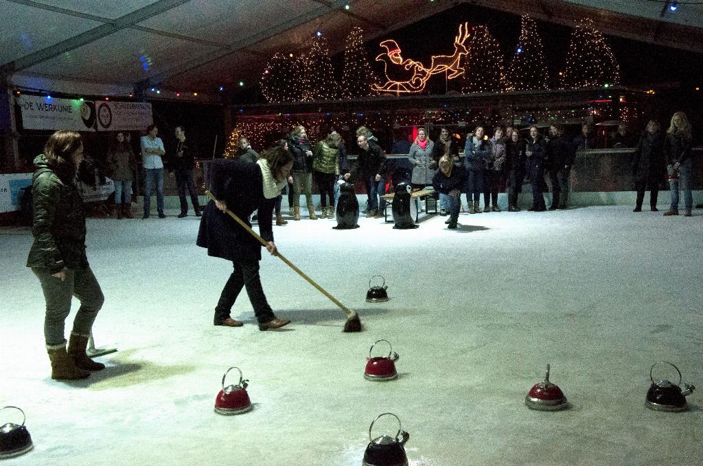 Geplaatst op:30-12-2015 Bijgewerkt op:30-12-2015 08:34 Spannende curlingfinale op Woerdense IJsbaanBron: Sophie KramerZaterdag 2 januari 2016 is de Woerdense IJsbaan op het Kerkplein het decor voor de spannende finale van de eerder gespeelde curlingwedstrijden. Met enerverende voorrondes, zenuwslopende kwart- en halve finales werd afgelopen 4 weken bepaald welke curlingteams zaterdagavond tegen elkaar uitkomen in de grande finale. De teams Flauwe Curl en Blok C zetten alles op alles om in die finale met de eer en de titel “Curlingcampioen van Woerden 2015’ te kunnen strijken. De finale start om 19.30 uur. Rond 21.45 uur volgt de prijsuitreiking. IJsbaan Woerden is een initiatief van de Woerdense Rotaryclubs en Rotaract. Alle activiteiten op de ijsbaan zijn te volgen op de website www.ijsbaanwoerden.nl, via twitter en www.facebook.com/ijsbaanwoerden. Enerverende voorrondes op de IJsbaan, foto: Sylvia van Halm