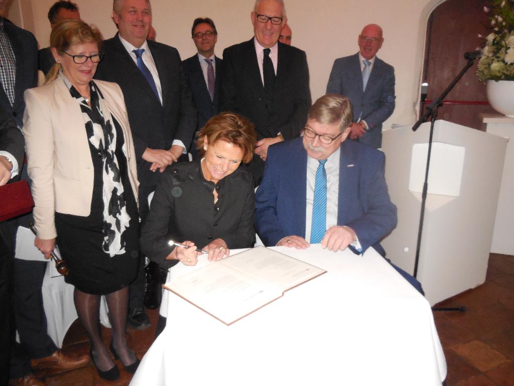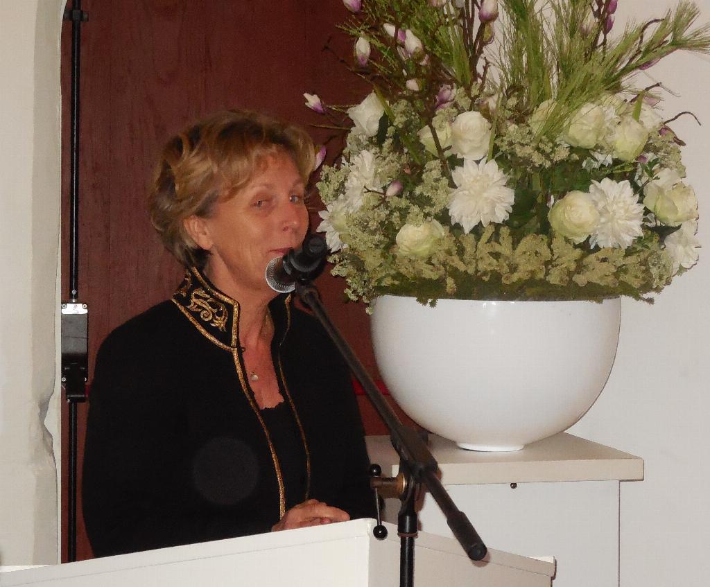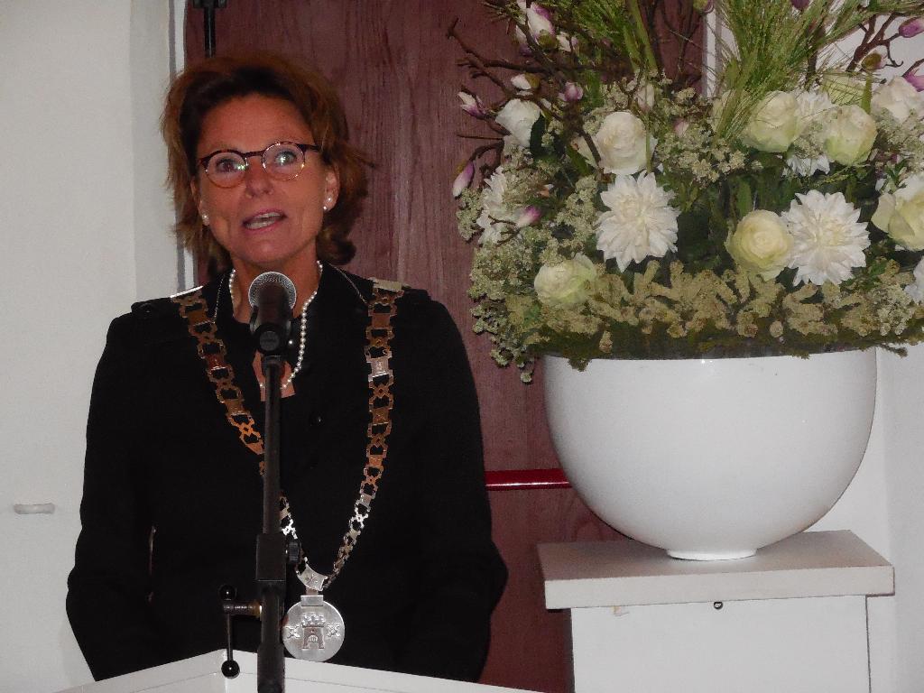 Hierna sprak kort Mevr. Westerlaken (burgemeester van Lopik) namens de burgemeesterskring en was blij dat van de 26 personen in dit genootschap er nu 5 dames zijn. Ook bijzonder dat het college van Montfoort ook uit 3 dames en een heer bestond. Zij vroeg bijzondere aandacht voor alle initiatieven rondom de Utrechtse Waarden, een van de prachtigste delen van de provincie Utrecht.