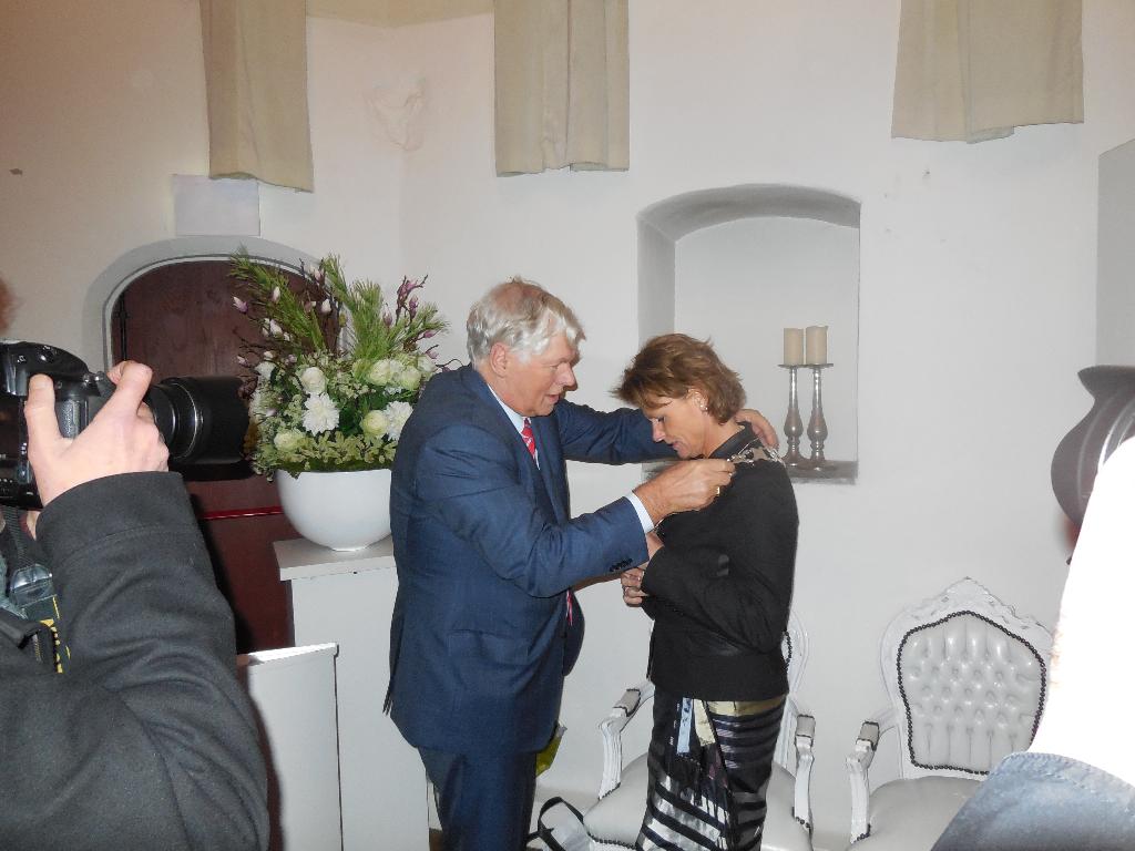 Dhr. Vlaar heette Petra als locoburgemeester, van harte welkom in Montfoort en sprak zijn bijzondere waardering uit voor de Commissaris van de Koning voor deze nieuwe bestuurlijke setting, waarna hij haar formeel de ambtsketen omhing. Zij zal Montfoort zeker ontdekken en veel van haar inwoners leren kennen. Hij schetste het royale verenigingsleven en haar eerste officiële daden, het overhandigden van de stadssleutel aan Prins Carnaval.