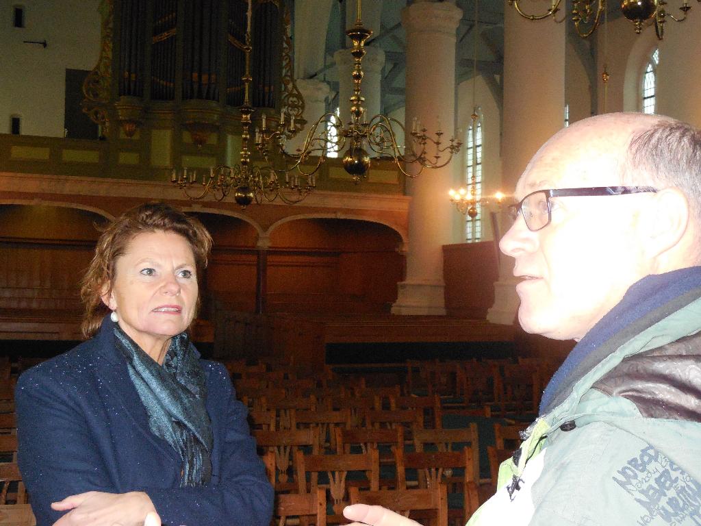 Geplaatst op:16-01-2016 Bijgewerkt op:19-01-2016 15:37 Rondleiding burgemeester van HartskampBron: redactie RSM Nettie Kuijer en Aad vdr Veen ism Peter VerslootOp zaterdag 16 januari werd Petra van Hartskamp samen met haar echtgenoot rondgeleid door de historische kern van Montfoort. Dit gebeurde onder de deskundige leiding van Peter Versloot, die bij elk monumentaal punt van de stad een uitgebreid verhaal had. Maar de start vond plaats in het stadskantoor, waar door Peter eerst een stukje historie van Montfoort, zoals het ontstaan van en de verdere geschiedenis werd verteld. Zo vertelde hij dat Montfoort werd gesticht rond het jaar 1160 en dat haar installatatie plaatsvond in de Commanderije die in in 1544 werd gebouwd.. Aan de hand van een plattegrond uit 1649 van Bleau schetste hij, hoe het er toen uitzag. Ook de bestuurlijke structuur van de Burggraaf geslachten De Rovere en De Merode onder het gezag van de bisschop van Utrecht werd toegelicht. De Burggraaf claimde eigenhandig in 1329 stadsrechten. 1672 was een rampjaar voor de stad, want toen kwamen de Fransen en die hebben o.a. het kasteel opgeblazen. Nadat Montfoort stads werd werd als verdedigingswerk een stadsmuur gebouwd, die veel later weer werd afgebroken , maar een gedeelte is nog steeds zichtbaar. Pas na 1940 werd Montfoort buiten de kern verder uitgebouwd.  |  | Toen werd het tijd om daadwerkelijk de straat op te gaan en via de Kasteelpoort ging het richting De Plaats, waar vroeger 2x per week een veemarkt was. Ondanks de slechte weersomstandigheden (hagelbuien e.d.) nam Peter toch de tijd om alle bezienswaardigheden te benoemen. Hierna was de Nederlands Hervormde kerk aan de beurt. Ook deze kerk heeft een rijk verleden, zo was het vroeger eerst een katholieke kerk, maar tijdens de reformatie is de kerk in goed onderling overleg protestants geworden. . Burgmeester van Hartskamp kreeg ook nog het orgel te horen, wat reeds 100 jaar oud is en afkomstig uit Vlaanderen. Ook werd nog het oudste stukje gebrandschilderd glas van Nederland getoond. Daarna was het tijd om via een korte tussenstop in het Oude Stadhuis om het schilderij genaamd “Poseidonius en Pompeius” van Hendrick Heerschop een leerling van Rembrandt te bewonderen wat in het eetcafé hangt. Daarna ging het via de Hoogstraat en de Heiliglevenstraat naar molen De Valk, waar alleen nog tijd over was voor een kort bezoek aan de winkel. De molen in werking was helaas niet mogelijk i.v.m. werkzaamheden. Het programma was qua tijd al zover uitgelopen dat men daarna met gezwinde spoed naar het Wapen van Linschoten moest om de rondleiding daar voort te zetten. Er volgde een rondje ‘rond de kerk’ en een blik op de boerderij Cromwijk. Marcel Valentijn nam de rondleiding over toen het gezelschap arriveerde bij het Huis te Linschoten. Landgoed Linschoten is met 500 hectare, 14 monumentale boerderijen waarvan er zeven nog een agrarische functie hebben, het Huis uit 1637 en het Parkbos het grootste aaneengesloten landgoed binnen de Randstad. Al 350 jaar is het landgoed een geheel gebleven. Geïnteresseerd luisterde de groep naar zijn verhalen over het landgoed, dat in 1969 in handen kwam van de Stichting G. Ribbius Peletier Jr. tot Behoud van het Landgoed Linschoten. De laatste eigenaar wilde hiermee versnippering van het landgoed voorkomen. Dat is gelukt. Toen het al bijna begon te schemeren arriveerde de burgemeester terug in Montfoort en gaf aan onder de indruk te zijn van de rijke geschiedenis van de stad Montfoort en het dorp Linschoten. 7 Foto's bij dit artikel Bekijk alle 7 foto's die bij dit artikel horen: Huis te Linschoten