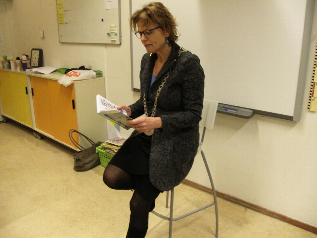 Geplaatst op:27-01-2016 Bijgewerkt op:27-01-2016 09:08 Burgemeester van Hartskamp leest voorBron: Nettie Kuijer, redactie Radio Stad MontfoortOp woensdag 27 januari zijn De Nationale Voorleesdagen 2016 gestart met Het Nationaal Voorleesontbijt. In heel het land lezen bekende Nederlanders, maar ook local heroes voor uit een mooi (prenten)boek. Op de Graaf Jan van Montfoortschool nam burgemeester Petra van Hartskamp plaats op de kruk voor de klas en liet eerst het woord aan de kinderen. Zij stelden vragen als: “Kon u als kind goed leren?” De burgemeester antwoordde bevestigend en stelde dat, door veel te lezen, je leert om steeds sneller te lezen. Nu ze heel veel stukken moet inzien is dat prettig. Ontspannen ging ze verder dat lezen vooral leuk is. Op de vraag: “Hoe is het om burgemeester te zijn?” antwoordde ze met een lach. En het verdiend best goed, maar ze streeft er niet naar om de rijkste vrouw van Montfoort te worden. “Zou niet lukken ook, en geld is niet zo belangrijk,” was haar antwoord. Groep acht aan de macht Terwijl de kinderen genoten van hun ontbijt, dat door een medeleerling was klaargemaakt, luisterden ze naar de klare stem van de burgemeester. Die niet alleen snel kan lezen, maar ook voorlezen in rap tempo deed. Er was nog tijd over, dus juffrouw Tienke Bouwmeester gaf de burgemeester de kans om de kinderen vragen te stellen. Deze begon met een goede zet en zei, refererend aan het boek: “ Is het hier ook wel eens zo’n zooitje?” Braaf antwoordde een leerling dat ze “ respect voor ouderen hadden.” “Worden jullie thuis voorgelezen?” was haar volgende vraag en ja, dat gebeurde soms nog. Haar wens voor de kinderen, die gaan uitvliegen in de regio, is dat ze hun vriendschappen behouden. Ze hoeven niet bang te zijn voor de CITO toets, “Ga uit van je eigen kracht.” Een les staatsinrichting leek de burgemeester ook leuk om eens te geven. In andere groepen lezen opa's/oma's en ouders voor. Dinsdag 2 februari 9-11u bezoek schrijfster Vivan den Hollander aan diverse klassen in Montfoort. 20 Foto's bij dit artikel Bekijk alle 20 foto's die bij dit artikel horen: voorleesontbijt