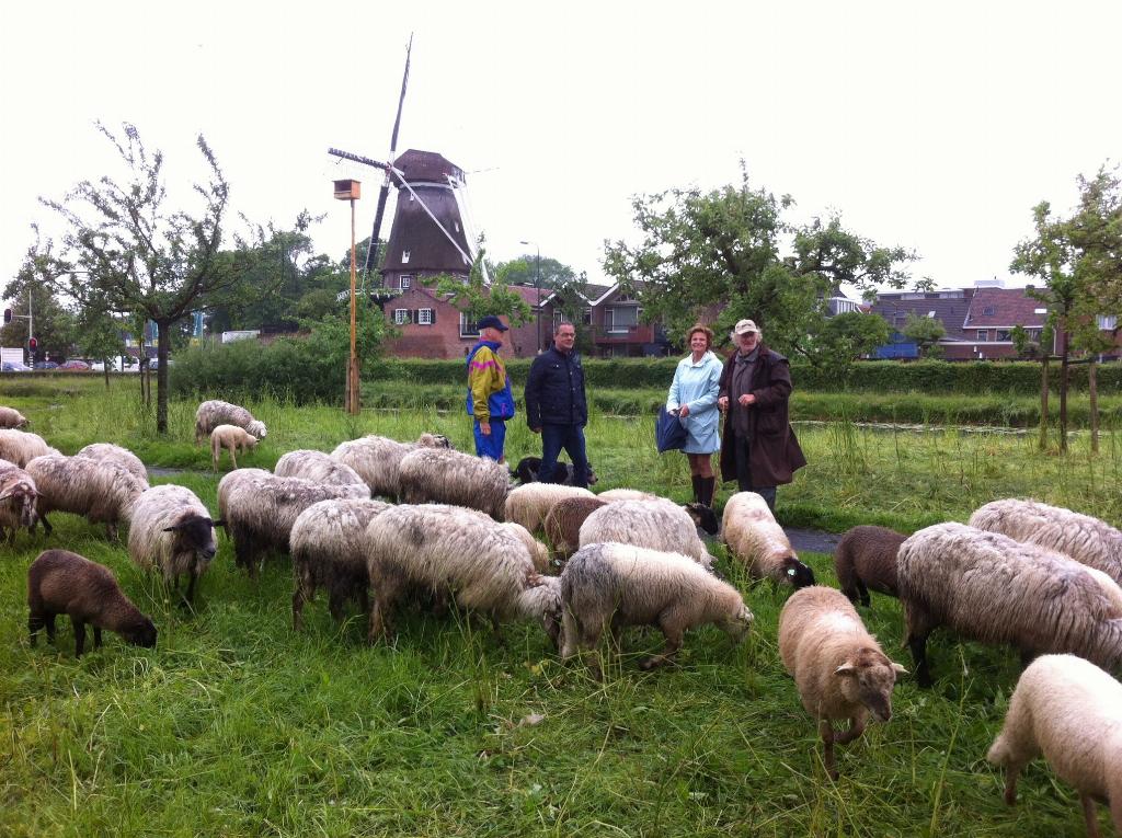 Geplaatst op:27-05-2016 Bijgewerkt op:27-05-2016 17:20 Schaapskudde in stadspark MontfoortBron: KH van MeekerenSinds een week loopt de streekherder met schapen en honden in het stadspark van Montfoort. Honderden Montfoortenaars kwamen al even kijken hoe dat gaat.. en foto’s nemen. Je ziet kinderen en schapen door elkaar lopen en elkaar begroeten. Ook burgemeester Hartskamp en groenondernemer Verhart maken kennis met de herder en kudde.  | “Het was dit weekend een drukte van belang, op één moment telde ik 54 mensen in, om en tussen de kudde.”, zegt herder Huug, de nieuwe herder in de Lopikerwaard. Het was mooi weer dit weekend, dan is een herder romantiek, vandaag met de regen: reumatiek. Huug zit vol verhalen. Ook over de biodiversiteit die een schaapskudde kan opleveren voor het park, omdat een kudde in korte tijd alles begraast en zaden meeneemt van hier naar elders en vice versa. Peter Verhart herinnert zich nog dat hier vroeger ook schapen liepen in de boomgaard die zijn vader beheerde: “dan is dit toch wel weer bijzonder”. Over 8-10 weken is de herder terug in het stadspark voor de tweede ronde. Wilt u volgen waar hij is? Kijk op: www.facebook.com/streekherder.  | Dit jaar is een proef om het park van Montfoort en elders in de Lopikerwaard te hoeden met de kudde. Hoe werkt dat met een schaapskudde en herder, de mensen eromheen, hoe reageert de beplanting? Het Streekfonds hoopt dat de herder en kudde gewaarde worden en zij samen met de gemeenschap de mogelijkheden vinden om dit initiatief voort te zetten. Dit jaar is het mogelijk in Montfoort omdat aannemer Verhart meewerkt en het Platform van overheden in de Utrechtse Waarden middelen beschikbaar stelt.