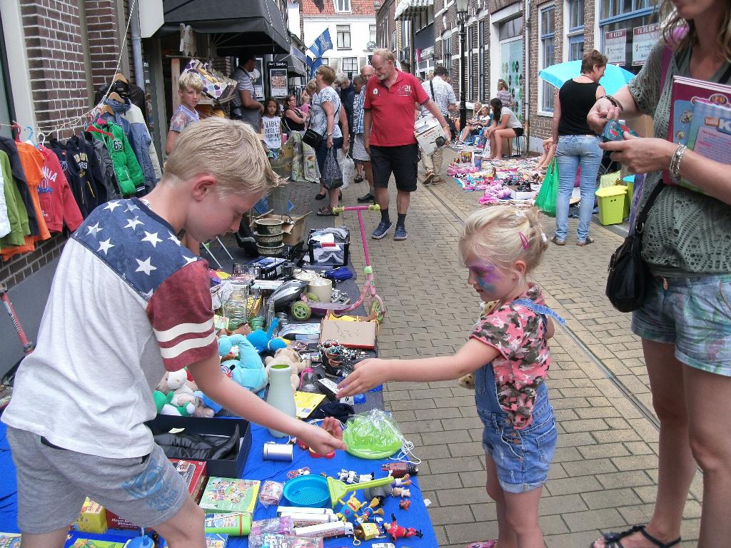 Geplaatst op:19-08-2016 Bijgewerkt op:19-08-2016 14:34 Razend druk op de rommelmarktBron: Nettie Kuijer, redactie RSMEr werden goede zaken gedaan in de smalle straatjes van Montfoort. Al zou de markt pas om 13.00 uur beginnen, vroeg in de morgen werden de kleedjes al uitgelegd. Het weer werkte mee, honderden kijkers en kopers schuifelden langs de koopwaar. 4 Foto's bij dit artikel Bekijk alle 4 foto's die bij dit artikel horen: rommelmarkt