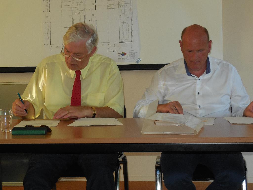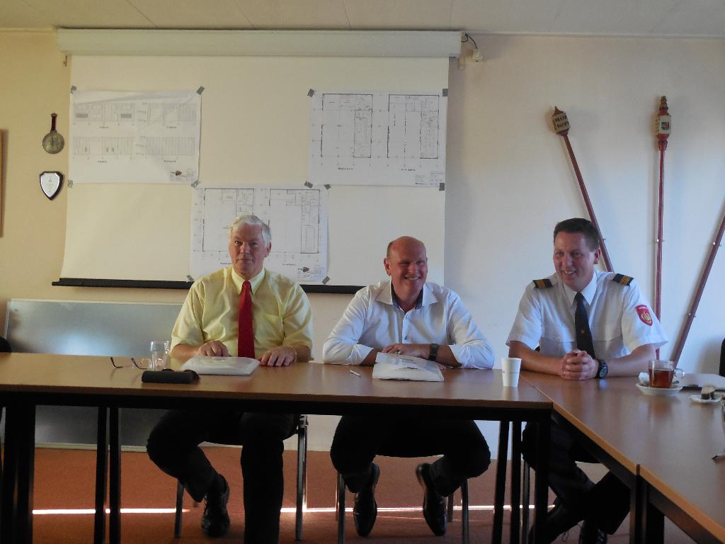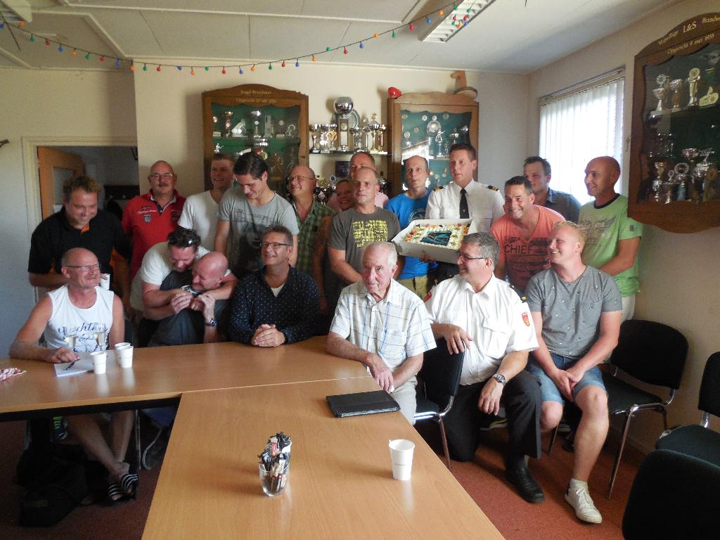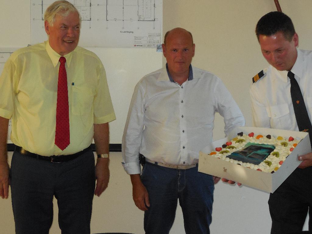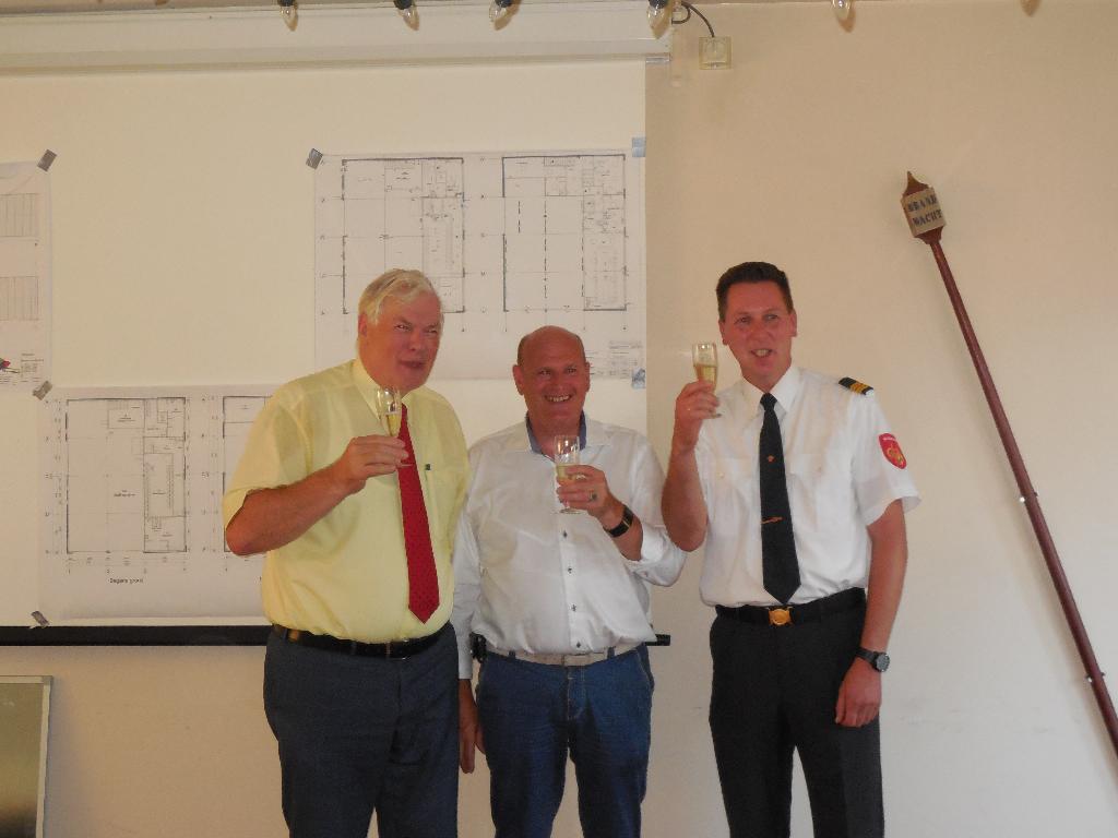 Geplaatst op:23-08-2016 Bijgewerkt op:23-08-2016 20:10 Nieuwe brandweerkazerne in LinschotenBron: redactie RSM Aad van der VeenOp dinsdag 23 augustus werd op feestelijke wijze het startschot gegeven voor de verbouw van een nieuwe kazerne in de van Rietlaan te Linschoten. In aanwezigheid van alle vrijwillige brandweerlieden en de oud-brandweerman Dhr. Ringelensteijn, die nog de oude kazerne had helpen inrichten, schetste wethouder Vlaar het belang van een goede kazerne in deze kern, vooral ook vanwege hun belangrijke taak m.b.t. de A12. Ook complimenteerde hij de vrijwilligers omdat zij door eigen werkzaamheden ruim €50.000 hebben bespaard op de totale verbouwkosten. Hierna kreeg Dhr. de Wit van het gelijknamige aannemersbedrijf het woord, die het een uitdaging vond om van een bestand pand een efficiënte brandweerkazerne te maken. Maar hij verzekerde iedereen, dat dit zeker voor de kerst is gerealiseerd. De huidige brandweercommandant Bonne-René Ringelensteijn, jawel zoon van, sprak zijn dank uit voor het (eind) resultaat, waarna de ondertekening door de gemeente en de aannemer kon plaatsvinden. Na afloop kon er nog een toast worden uitgebracht wat gepaard ging met o.a. een prachtige taart, wat iedereen zich goed deed smaken.