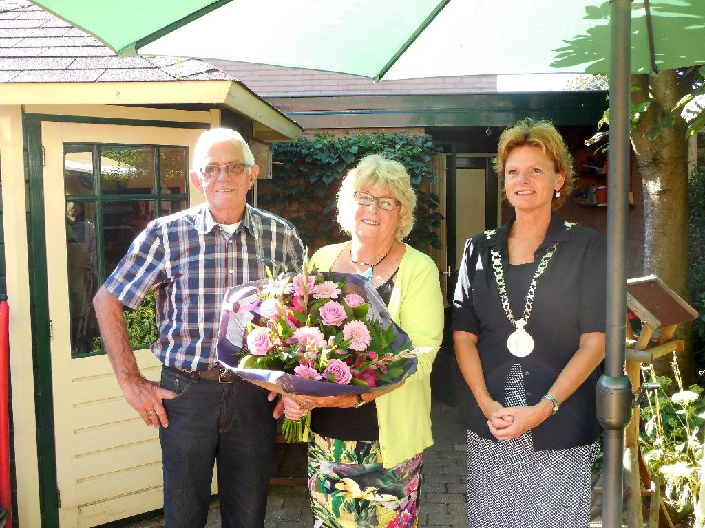 Geplaatst op:24-08-2016 Bijgewerkt op:24-08-2016 14:24 50-jarig huwelijk van Dhr. en Mevr. Le Noble-StraverBron: redactie RSM Aad van der VeenOp woensdag 24 augustus ging burgemeester Hartskamp op bezoek bij Gerrit en Alie Le Noble, die deze dag hun 50-jarig huwelijk vierden. Dit bezoek ging uiteraard gepaard met een prachtig boeket bloemen. Het werd een zeer geanimeerd gesprek, waarin vooral de vele verhalen over alle activiteiten die zij in de Montfoortse gemeenschap doen de revue passeerden. Maar eerst maar even terug naar het verleden, Gerrit (77) woonde toentertijd in IJsselstein, als zoon van een boerenfamilie en Alie (73) woonde in Schoonhoven. Ze komen beiden uit een gezin van 10 kinderen en dat is tot op de dag van vandaag een heel feest als de families bij elkaar komen. Beiden zijn van katholieken huize en het was gebruikelijk dat je dan naar dansles ging. Gerrit ging werken en dus ook dansen in Schoonhoven en daar sloeg de vlam over. De verkeringstijd duurde ongeveer 8 jaar. Ze gingen na hun trouwen wonen in IJsselstein, waar zij 7 jaar hebben gewoond. Ondertussen kregen zij 2 zonen, die allebei weer 2 kinderen hebben. Dus hebben Gerrit en Alie 2 kleindochters en 2 kleinzonen. Op de kleindochters hebben zij tijdens de lagere schoolperiode nog heel veel opgepast. Omdat de behuizing te klein werd, gingen zij zo ongeveer 43 jaar geleden op zoek naar een nieuw huis. En dat was snel gevonden in een (toenmalige) nieuwbouwwijk, vlakbij een prachtig scholencomplex aan de van Damstraat. En dat was tevens de gelegenheid om in Montfoort allerlei activiteiten te ontplooien. Zo heeft Alie, die eerst bij het accountantskantoor de Rijk werkte, daarna samen met pastor Fik de Bruijn de administratie en nieuwe systemen van de katholieke kerk in Montfoort opgezet. Dit heeft zij gedaan van 1977 tot 2003. Daarnaast zingt zij bij Cecilia, de Cantores en Sterk Spul. Daarnaast is zij vrijwilliger bij de molen en schildert zij graag. Gerrit was werkzaam bij Terberg in de administratieve sector, maar is daarnaast jaren actief geweest als jeugdleider bij MSV ’19. Ook stappen zij beiden graag op de fiets om in de omgeving of verder weg de natuur te verkennen. Ook de tuin is een grote hobby van hem. Ook hij zingt graag en wel bij de IJsselzangers en helpt hij bij de SWOM o.a. bij “tafeltje dek je” en het verzorgen van de interne post. Ook is hij nog mantelzorger voor zijn broer. Beiden zijn ook actief bij de Zonnebloem, gaan zij graag mee met de reizen van het Knooppunt. Op de vraag of ze nog tijd hadden om op vakantie te gaan, was het antwoord “zeer zeker” we gaan nog jaarlijks 14 dagen naar Schoorl, vooral om lekker uit te waaien op het strand.