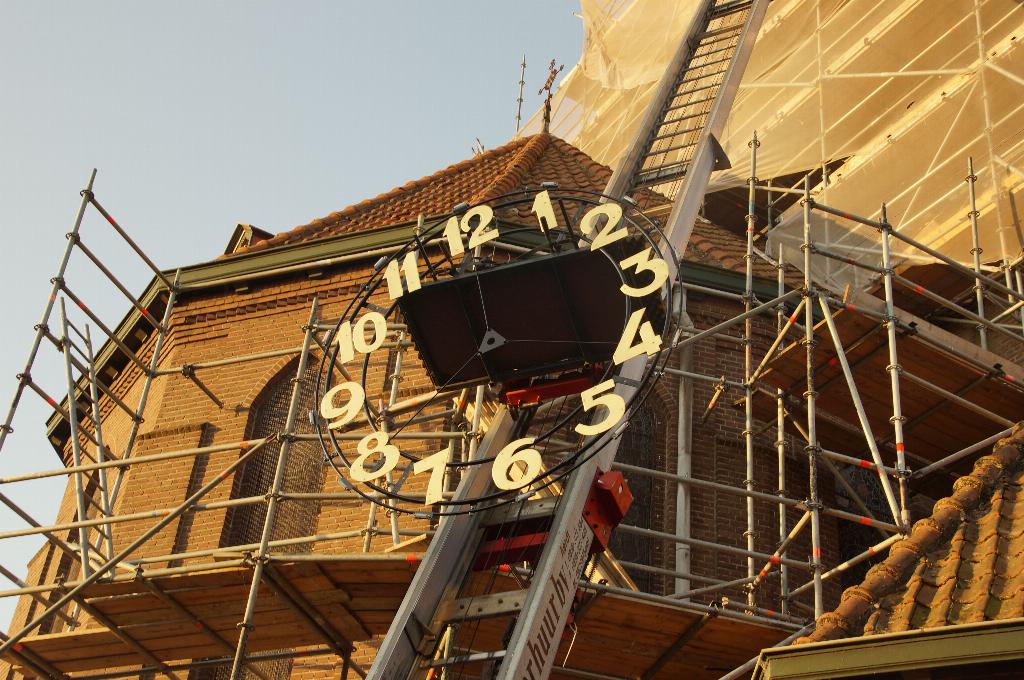Al maanden van zijn plaats is het nu bijna zover:  Op 26 september om 14.00u wordt de haan weer op het hoogste punt van de toren geplaatst. Weer lekker schoon en voorzien van een frisse, stralende ‘‘huid’’.