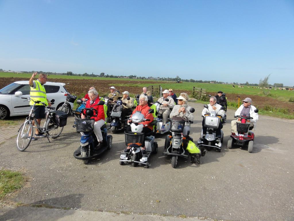 Geplaatst op:30-09-2016 Bijgewerkt op:30-09-2016 07:59 Alweer een dag met een gouden randjeBron: Truus de Jong / Foto�s: Truus en Ton de JongZo noemde een van onze leden deze laatste middag van ons scootmobielseizoen in Montfoort. Heerlijk zonnetje en lekkere temperatuur zorgde voor een mooie rit die via Het Beloken Land in Blokland ging. Veel van onze leden waren hier nog nooit geweest en Ton vertelde eea over de geschiedenis en het ontstaan van Het Beloken Land. Heel geïnteresseerd werd er geluisterd voor we verder reden naar Zorgboerderij Doruvael. Andere jaren heette Patricia Vlooswijk ons van harte welkom. Nu was ze door omstandigheden weggeroepen. Toch stond Patricia erop dat de middag voor onze club door zou gaan. Dus gingen Trees en Agatha, Truus en Willy, vrouwen van onze begeleiders, in Patricia’s keuken aan de slag en hadden de koffie klaar toen we met de groep aankwamen. Tafels en stoelen hadden ze naar buiten gesjouwd en zo was het genieten op een geïmproviseerd terras in de heerlijke najaarszon. Ook de leden die door omstandigheden dit seizoen hebben moeten afhaken waren met de auto thuis opgehaald en inmiddels gearriveerd. Chocolade bij de koffie werd getrakteerd door een lid van onze groep en na de koffie waren er stapels pannenkoeken, gebakken door onze 4 dames. Wat lieten onze leden die zich goed smaken!! Alles ging op! Voor we weer richting huis gingen was er een luid applaus van onze deelnemers voor alle begeleiders en hun vrouwen als dank en waardering voor hun grote inzet om elke woensdagmiddag gedurende het afgelopen scootmobielseizoen weer een leuke middag voor alle leden te verzorgen. Ja, we hebben een zeer hechte ledengroep die het betreuren elkaar een half jaar niet meer wekelijks te zien. Patricia, ondanks alles hebben we een heerlijke middag gehad en hartelijk dank voor je gastvrijheid!! 6 Foto's bij dit artikel Bekijk alle 6 foto's die bij dit artikel horen: scoot Doruvael