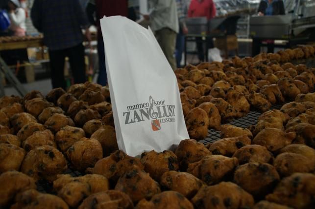 Geplaatst op:17-12-2016 Bijgewerkt op:17-12-2016 12:07 Mannenkoor Zanglust stroopt de mouwen weer opEn bakt dit jaar weer 25.000 oliebollen en appelflappen; ook in Montfoort te koop! In de laatste week van 2016 zijn leden van Mannenkoor Zanglust uit Linschoten actief bezig met het bakken van heerlijke oliebollen en appelflappen. De actie begon 40 jaar geleden met 170 kg bloem. Dit jaar zullen naar schatting 1250 kg bloem en 400 kg rozijnen worden verwerkt tot totaal 25.000 oliebollen en appelflappen. Voor de appelflappen worden ruim 600 kilo appels (Montfoortse goudrenetten) geschild, geboord en in schijven gesneden. Na het voorbereidend werk op dinsdagavond 27 december wordt op donderdag 29 december en vrijdag 30 december gestart met het bakken van respectievelijk appelflappen en oliebollen. Vrijwel het hele koor is actief betrokken, ook partners en jongeren werken al deze dagen mee om uiteindelijk op zaterdag 31 december 2016 de metaalfabriek aan de Korte Linschoten NZ weer schoon op te leveren.  | Er zijn vijf verkooppunten: Drie in Linschoten: bij Van Dijk Systems, Laan van Overvliet, bij de ( voormalige ) brandweergarage aan de Strick van Linschotenstraat en bij de MCD supermarkt. Twee in Montfoort: op de parkeerplaats bij Albert Heijn aan de Verlengde Hoogstraat en bij de Waterpoort ( schuin tegenover Mado en Hema ). Om alle kopers van oliebollen en appelflappen uit Linschoten, Montfoort en omgeving te bedanken wordt op zaterdag 7 januari 2017 een Oliebollen-Bedank-Concert gehouden in ’t Kruispunt aan de Nieuwe Zandweg te Linschoten. Aanvang 20.30 uur. Toegang is uiteraard gratis. Voor informatie: E.W. de Jong, PR- commissie Zanglust, Nieuwe Zandweg 6a, 0348-416265 , dejongbakker@planet.nl Mannenkoor Zanglust Linschoten. Opgericht 20 mei 1946. Postadres: Jan Hoenlaan 91 3417 CB Montfoort; www.zanglust.nl email: info@zanglust.nl