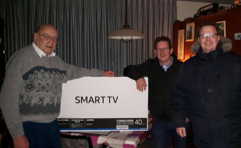 Geplaatst op:03-01-2017 Bijgewerkt op:03-01-2017 20:59 Hoofdprijs kerstbingo uitgereikt.Bron: redactie RSM Aad van der VeenNadat er op 2de kerstdag van twee tot vijf weer de traditionele kerstbingo werd gespeeld, was het deze week tijd om de hoofdprijs uit te reiken aan de winnaar van de superronde. Even terug naar de 26ste, tweede kerstdag. Nadat er eerst van 2 tot 4 uur twee normale bingo ronden waren met wel een verhoogd bedrag van €75 voor een volle kaart, was het om vier uur tijd voor de superronde, waarin een aantal prachtige prijzen waren te winnen, waaronder een airfryer, gourmetstel en een Senseo koffiezetter, ook geschikt voor een kan koffie. Maar de knaller en de hoofdprijs was een 40 inch smart tv. Nadat er twee keer een bingo werd gemeld, bleek al snel dat we met slapers te maken hadden. Dus was alle geluk deze keer voor Peter Frankhuisen, die van Edwin Tollenaar en Dennis Boele de beide bingomasters deze prijs in ontvangst mocht nemen.