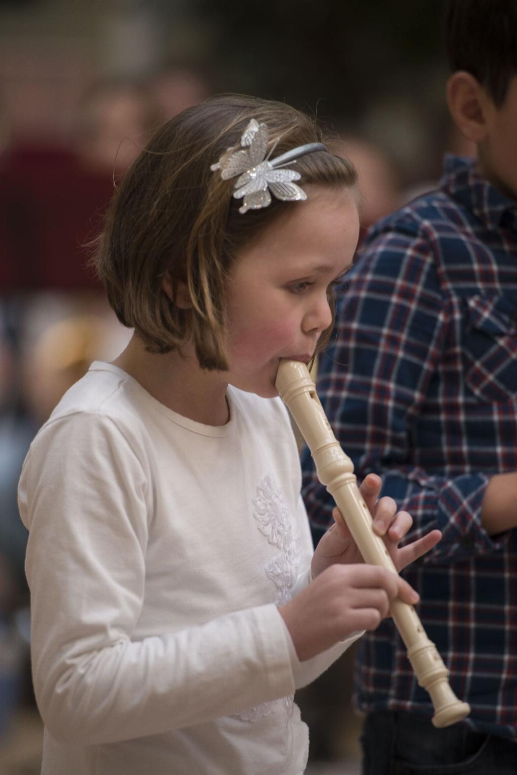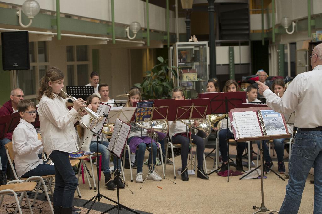 Naast deze oefenstukken werd er ook solo of in duetten een stuk voorgedragen aan het publiek, razend spannend om helemaal alleen een stuk te spelen voor het volgestroomde atrium van het Antoniushof, een plek waar mede door de mooie akoestiek de solo's zeer goed uit de verf komen! De Fluitmajoren kwamen uiteraard ook in actie en mochten tevens hun diploma in ontvangst nemen voor het met goed gevolg afleggen van het AMV examen.
