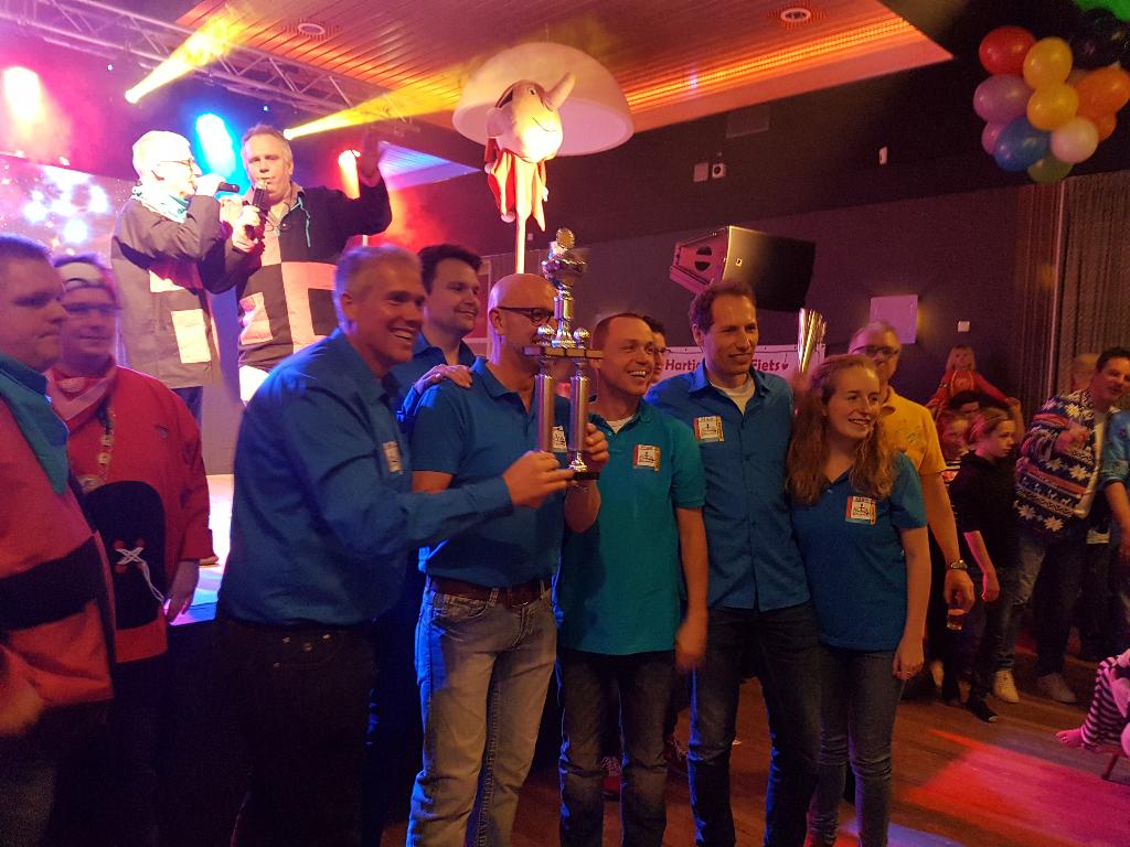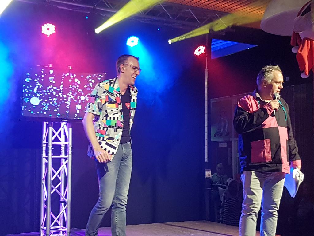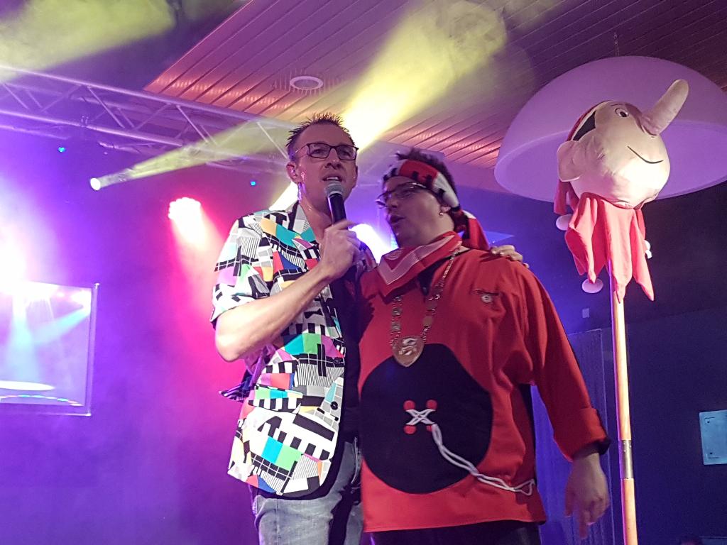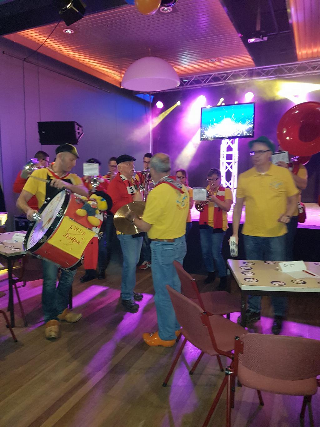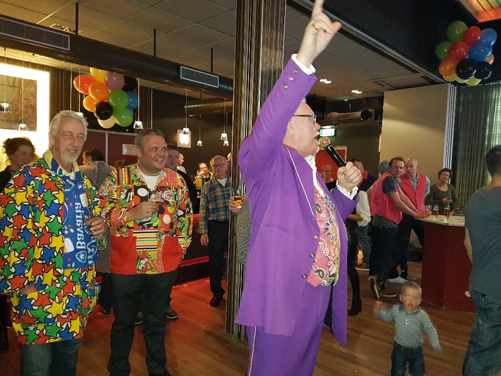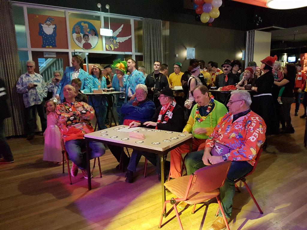 Geplaatst op:20-02-2017 Bijgewerkt op:20-02-2017 15:39 Carnavalsspektakel 2017Bron: redactie RSM Aad van der Veen en foto's Carla van ZuylenHet team van radio stad Montfoort had op zondag 19 februari weer een geweldig feest georganiseerd in de St. Joseph. Dit als voorbode van het komende carnaval. Dit jaar was er geen competitie met allerlei spellen, maar een pub-quiz met 16 deelnemende teams. Hiervoor moest iedereen een aantal, meestal muzikale vragen beantwoorden, maar dat viel zeker niet mee. Nadat deze wedstrijd was afgelopen, gaf ZWUP de aftrap met diverse carnavals hits. Daarna was het de beurt aan Jan van Woudenberg, die de zaal al snel op zijn kop zette. Ook kreeg hij nog ondersteuning van het aankomende talent Timo die samen met Jan nog een tweede keer het liedje “ik krijg die lach niet van mijn gezicht” zong. Timo gaf ook een solo optreden met een originele Montfoort-rap. Wat hem al snel de titel van de Montfoortse Ali-B opleverde. Daarna was het de beurt voor onze eigen huisartiest Marco de Hollander. Zoals we gewenst zijn en ook niet anders hadden verwacht ging toen echt het dak van de soos eraf. De ene polonaise was nog niet afgelopen, of de volgende werd al weer ingezet. Marco werd dan ook bedankt voor wederom een geweldig optreden. Omdat iedereen even moest bijkomen, kregen Ad en Ries mooi de gelegenheid de prijswinnaars van de pub-quiz bekend te maken. Het jury-team eindigde in de middenmoot van de 16 deelnemers, maar de winnaars waren, op de derde plaats “de Zwuppies” met 46 punten, op nummer 2 plaats café Joop met 47 punten en de winnaars waren met 48 punten “de 24 uur van Montfoort”. Zij mochten met een prachtige beker naar huis. De middag werd afgesloten met een fantastisch optreden van de Brabantse Johnny Gold. Hij wist op geheel eigen stijl, lopend tussen alle feestgangers, iedereen wederom op de vloer te krijgen, o.a. met het nummer “waar is dat feessie, hier is dat feessie”. Van polonaise tot een roei act, niets was te gek voor hem. Rond de klok van vijf moesten we helaas afscheid nemen van alle artiesten, maar iedereen was in ieder geval vast opgewarmd voor het komende carnaval.