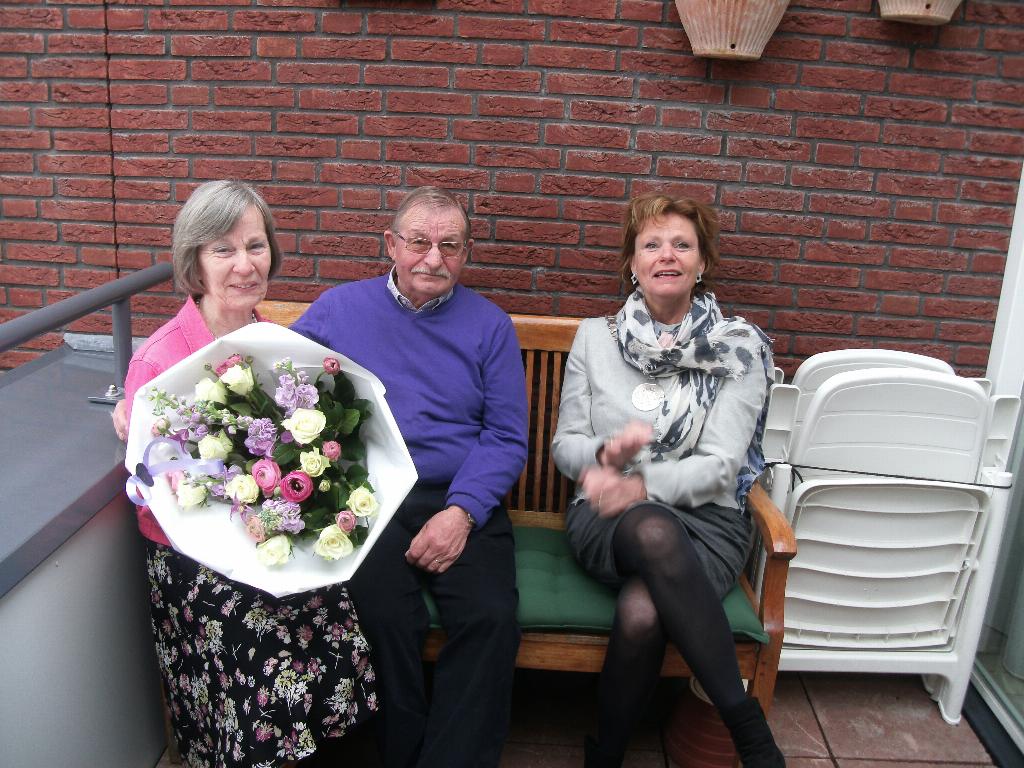 Geplaatst op:29-03-2017 Bijgewerkt op:29-03-2017 12:27 Gouden huwelijk Adri en Dirk Jan Van der PolBron: Nettie Kuijer, redactie Radio Stad MontfoortWoensdag 30 maart brachten burgemeester Van Hartskamp en de pers een bezoek aan Adri en Dirk Jan van der Pol om hen te feliciteren met hun 50-jarige huwelijk. Dirk Jan werd geboren in Leiderdorp in een gezin met drie kinderen. Tijdens de oorlog moesten ze hun huis verlaten. Zijn vader kreeg werk bij steenfabriek “De Nijverheid” op Heeswijk en later ging zijn zusje werken op een pachtboerderij bij Huis te Linschoten. Hij haalde en bracht haar regelmatig en ontmoette zo Adri, wiens opa daar woonde. Hij bewonderde haar lieve gezichtje en haar lange donkerblonde haren. Adri de Graay werd geboren in Oisterwijk in een gezin met vier kinderen. Ze was graag bij haar opa op de boerderij en zag Dirk Jan daar regelmatig met zijn kameraad langskomen. Die vriend beviel haar wel, maar ze viel toch op de avontuurlijke Dirk Jan. Dirk Jan was o.a. fietsenmaker, ijzervlechter en werkte bij Mona. Ook ging de avontuurlijke Dirk Jan 2x3 maanden naar Zweden, waar hij met zijn kameraad, per abuis, eens sliep in een tentje op het kerkhof.. 31 Maart 1967 trouwden zij en gingen wonen in de Vinkenbuurt in Linschoten. Adri volgde de Moedermavo in Woerden en werkte o.a. in de Rijnapotheek en de zorg. Twee dochters, schoonzonen, zeven kleinkinderen maakten hun geluk compleet. De kleinkinderen noemen Dirk Jan “Opa filmpje,” want hij filmt en fotografeert graag. En als hij een liedje zingt en de tekst niet weet dan fluit hij gewoon verder. Samen mooie reizen maken, vroeger met broer, schoonzus en de kinderen, nu samen. Fietsen, zwemmen, koersbal, er is nog veel te beleven en genieten. Hun nieuwe huis in de Lindescote biedt alle comfort en gezelligheid. 6 Foto's bij dit artikel Bekijk alle 6 foto's die bij dit artikel horen: Pol