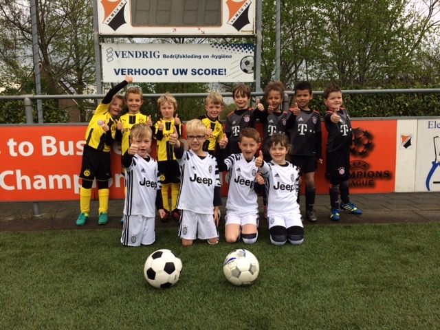 Geplaatst op:19-04-2017 Bijgewerkt op:19-04-2017 11:30 Nieuwe team kledingBron: Kees BoumanSinds de start van de voorjaarscompetitie is de Champions League uitgebreid met 3 teams van 6 naar 9 teams. Met de toevoeging van de teams Juventus, Bayern Munchen en Borussia Dortmund heeft de MSV Champions League nog meer internationale allure gekregen. Natuurlijk werden ook deze teams in het nieuw gestoken door onze hoofdsponsor van de MSV Champions League, namelijk de MSV Business to Business club. Jongsleden zaterdag was de officiele overdracht. De "duimpjes" van de spelers gingen dan ook met veel overtuiging de lucht in als dank voor deze prachtige tenues. Ook namens de MSV Champions League organisatie dank voor de sponsoring.