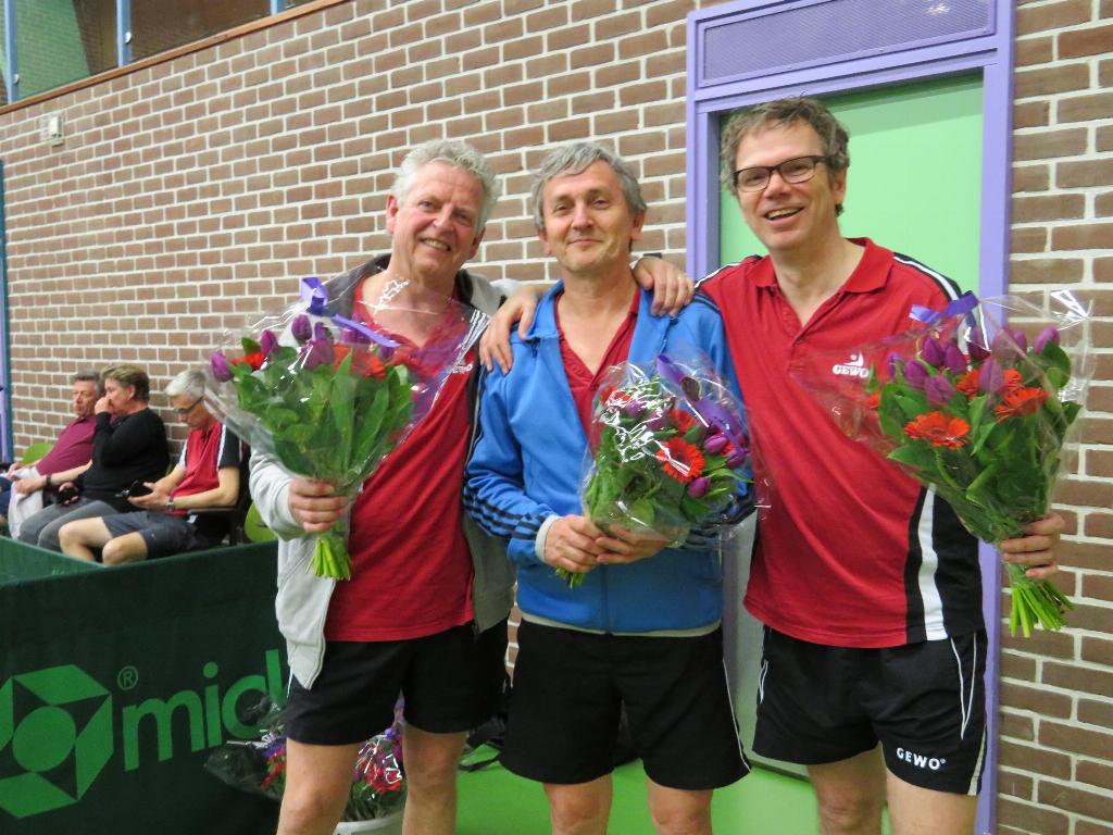 Team 3 werd met overmacht Kampioen. Uiteraard werden ook zij door de voorzitter gehuldigd. Gefeliciteerd Henk, Jos, Frank en Tom (niet op de foto)!