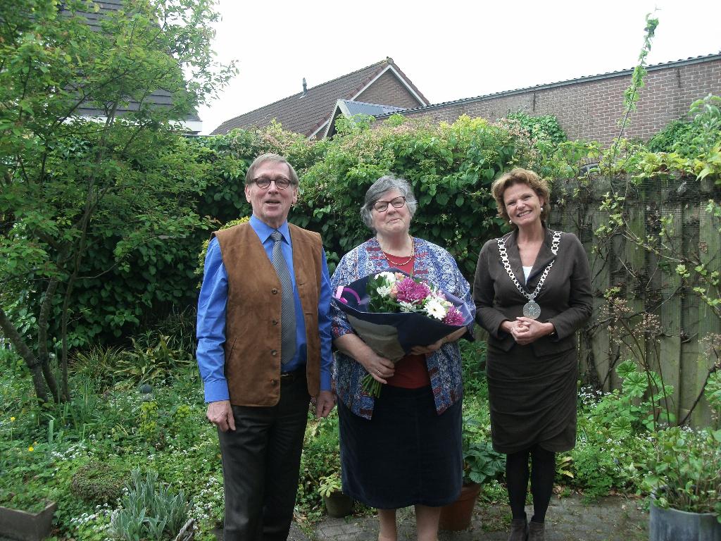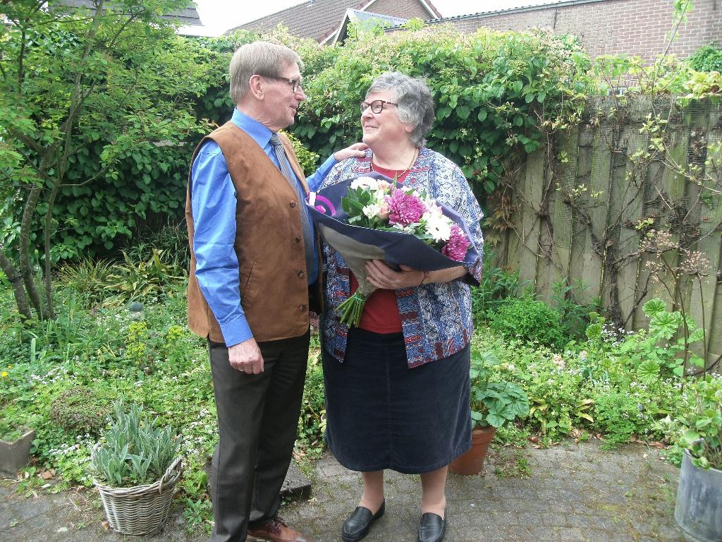 Vijftig jaar later kwam burgemeester Hartskamp het 50-jarig bruidspaar persoonlijk feliciteren in hun gezellige woning aan de Zandweg in Linschoten.