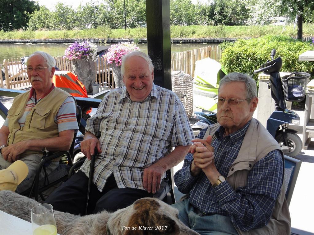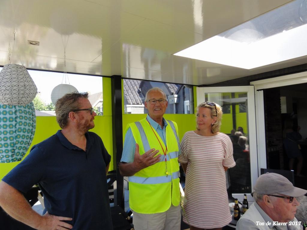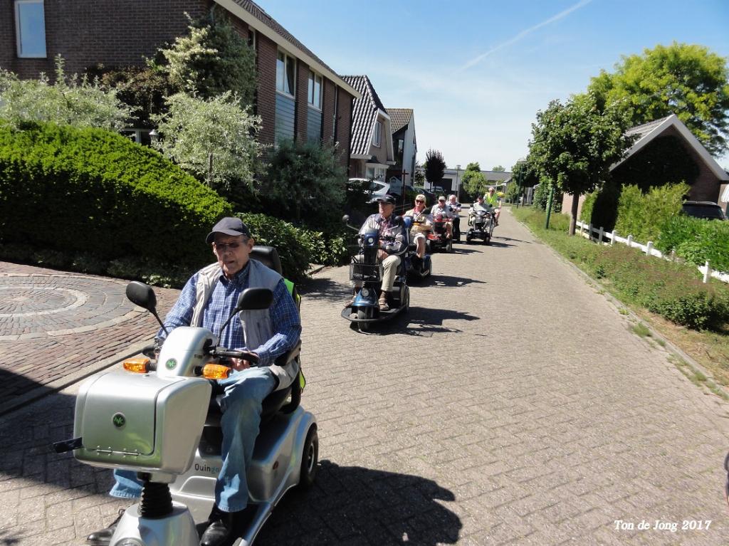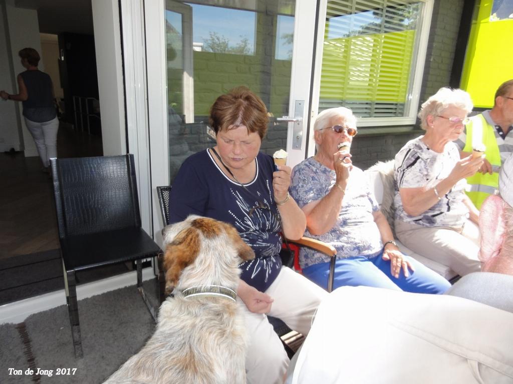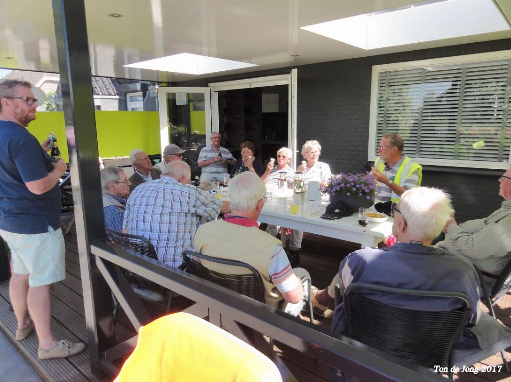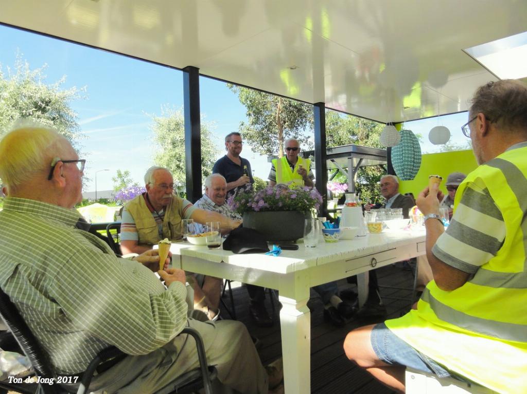 Geplaatst op:19-06-2017 Bijgewerkt op:19-06-2017 09:42 Scootmobielclub 14 juniBron: Truus de Jong / Foto�s: Ton de Klaver en Ton de JongKomkommertijd, maar zeker niet voor de Scootmobielclub!! Wat is het toch mooi dat er zoveel gastvrijheid ervaren wordt door de leden van onze Montfoortse Scootmobielclub. Zo ook afgelopen woensdag. Na een prachtige rit waren we uitermate welkom bij Lucienne en Ruud Jankovits, bewoners van het prachtige huis aan De Cope waar voorheen Dr. Steggerda heeft gewoond . Bij hen waren we nog niet eerder te gast maar wat gastvrijheid is weten ook zij als geen ander!! Lucienne had zelf taart gebakken die dat bij de koffie presenteerde. Ook haar moeder en vriendin waren hierbij actief. Daarna bood Ruud een rondleiding aan door hun mooie huis aan de IJssel waar door de liefhebbers enthousiast gebruik van werd gemaakt. Inmiddels stonden er drankjes en hapjes op tafel, met later nog ijs naar keuze toe wat door onze leden bijzonder werd gewaardeerd! En hoewel gezelligheid geen tijd kent was het daarna toch écht tijd om huiswaarts te gaan. Lucienne en Ruud, heel hartelijk dank namens leden en begeleiders voor jullie gastvrijheid en in het bijzonder ook jullie uitnodiging voor volgend jaar!!