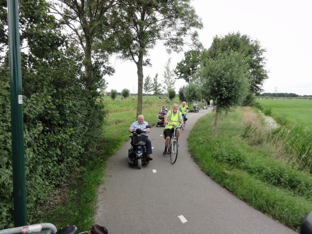 Geplaatst op:04-08-2017 Bijgewerkt op:04-08-2017 09:52 Scootmobielclub via Kippenkaai en Weidepad naar De WerfBron: Tekst Truus de Jong, foto�s Ton de Klaver en Ton de JongDe route langs onze mooie “Kippenkaai” leidde via de Reinaldaweg en het landelijke Weidepad naar de familie van de Werf in Cattenbroek waar we door Gerda Anja en Martien verwelkomd werden. Koffie met daarbij allerlei lekkers zorgde al gauw voor een gezellig sfeertje op hun terras. Martien vulde daarna de glazen met frisdrank en Gerda en Anja gingen rond met lange satéprikkers met fruit uit eigen tuin ,en gezonde gevulde eieren. Dat liet ieder zich prima smaken! Hartelijk werd afscheid genomen van Gerda ,Anja en Martien, waar we ook dit jaar weer zo welkom waren. Namens alle leden en natuurlijk hun begeleiders Rinus-Ton- Jan en Ton dank voor deze gezellige middag! 6 Foto's bij dit artikel Bekijk alle 6 foto's die bij dit artikel horen: scoot 2 aug