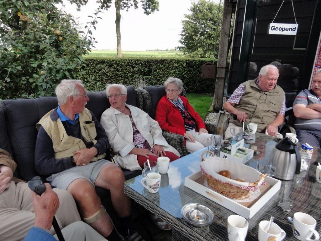 Geplaatst op:10-08-2017 Bijgewerkt op:10-08-2017 11:28 Een topmiddag voor de scootmobielersBron: Truus de Jong / Foto�s Albert van Wieringen en Ton de JongOndanks de harde wind lieten we ons leiden door de zonnige luchten en vertrokken op tijd voor wat vandaag een lange tocht zou worden. Door Willeskop reden we richting Oudewater om vervolgens af te slaan naar de Hoenkoopsebuurtweg. Iedereen genoot van de prachtige natuur en mooie boerderijen. Aan het einde van de Hoenkoopsebuurtweg werden we hartelijk welkom geheten op de boerderij van Jolanda en John Benschop, ‘Hoonaard-Hoeve’ geheten. In hun knusse theetuin annex tuinhuis werden we getrakteerd op koffie en ruime keuze in lekkere koeken. En de verhalen kwamen weer los ,van Kees van Rooijen ,Joop van Breukelen, Laus Vermeij en Kees Kemp, want die konden Jolanda en John van hun jeugd jaren. Terwijl Jolanda en John voor iedereen een glas frisdrank inschonken met lekkere snoeperijtjes erbij genoten de leden ook van het landelijk uitzicht .daarna werd het tijd om afscheid te neme Jolanda en John, namens onze leden en begeleiders Albert-Jan- Rinus en Ton, hartelijk dank voor jullie geweldige gastvrijheid én aanbod om ook volgend jaar weer te mogen komen! Top!! 6 Foto's bij dit artikel Bekijk alle 6 foto's die bij dit artikel horen: scoot 9 aug