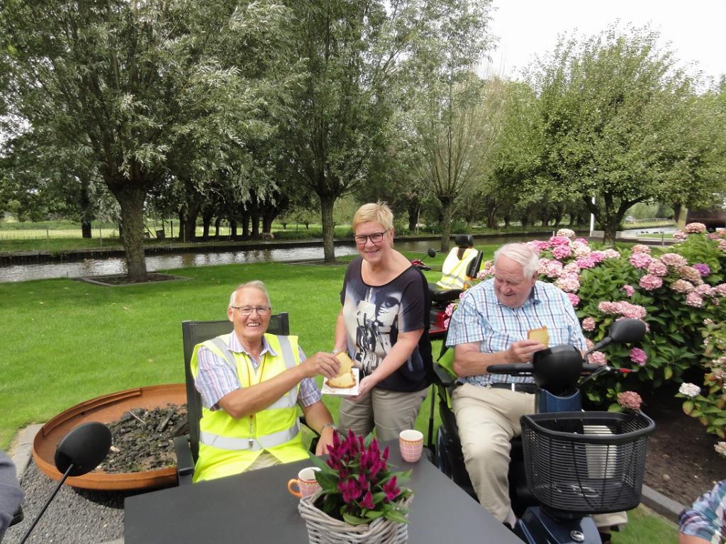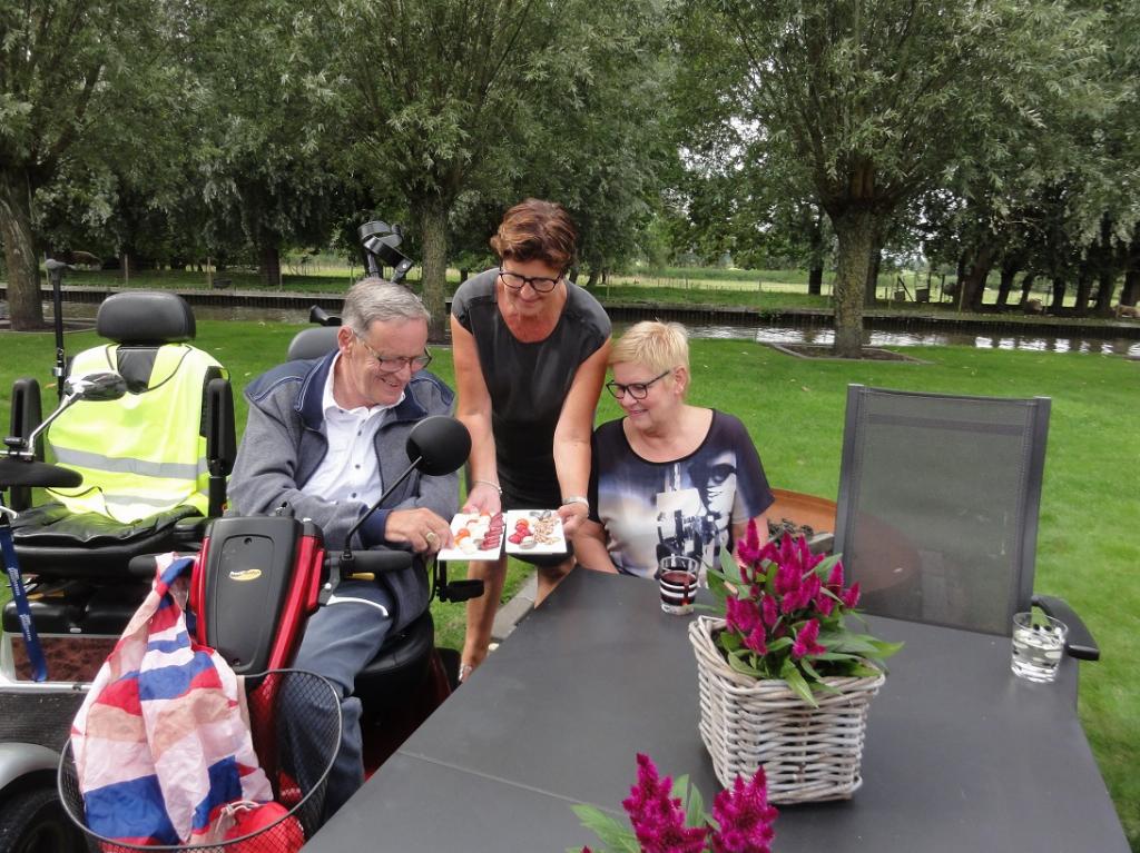 Onze leden hebben intens genoten van de mix van heerlijk weer, mooie tuin en allerlei lekkers op tafel, maar toch komt ook aan deze middag een einde. We namen afscheid van Sjanie en Margriet met een hartelijk dank namens de leden en begeleiders Rinus, Jan, Albert en Ton