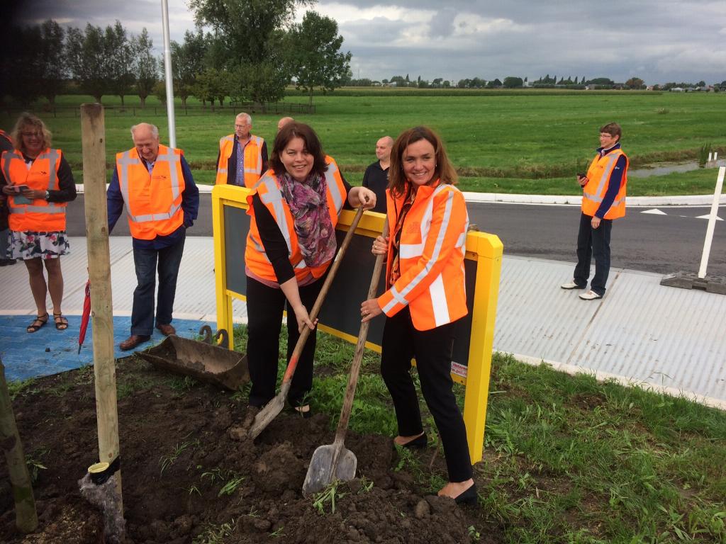 Geplaatst op:31-08-2017 Bijgewerkt op:31-08-2017 19:29 Rotonde Blokland in Montfoort officieel geopendBron: provincie Utrecht, foto's RSMIn aanwezigheid van omwonenden is donderdag 31 augustus de rotonde op het kruispunt van de M.A. Reinaldaweg (N204) en Blokland in Montfoort geopend. Met het planten van wilgentenen op het middeneiland van de rotonde legden wethouder Marieke Lejeune-Koster en gedeputeerde Jacqueline Verbeek-Nijhof de laatste hand aan de inrichting. Gedeputeerde Jacqueline Verbeek-Nijhof: “Samen met de gemeente hebben we gekozen voor een rotonde als meest verkeersveilige oplossing voor dit kruispunt waar regelmatig ongelukken zijn gebeurd. Naast verkeersveiligheid ging onze aandacht ook uit naar een fraaie inrichting van het middeneiland, passend in het mooie gebied van de Utrechtse Waarden.” Wethouder Marieke Lejeune-Koster is blij met het resultaat: “Voor auto’s en vrachtverkeer is de situatie veel overzichtelijker en veiliger geworden. Omdat het fietspad is verschoven, worden fietsers niet meer geblokkeerd door auto’s die de provinciale weg opdraaien.” De rotonde is aangelegd om de verkeersveiligheid op het kruispunt te verbeteren. In juni van dit jaar is aannemer Van Wijk begonnen met de aanleg, op maandag 10 juli kon de rotonde in gebruik worden genomen door het verkeer. Alleen aan de inrichting van het middeneiland moest nog een laatste hand worden gelegd. De rotonde heeft een streekgebonden inrichting. Deze inrichting past bij de andere rotondes in de Utrechtse Waarden. De inrichting van het middeneiland verwijst naar een eendenkooi die vlakbij de provinciale weg te vinden is. Diverse eendenkooien zijn bewaard gebleven en vormen bijzondere cultuurplekken in het open weidelandschap van de Utrechtse Waarden. De wilgentenen die op 31 augustus zijn geplant, maken de inrichting van het middeneiland compleet.