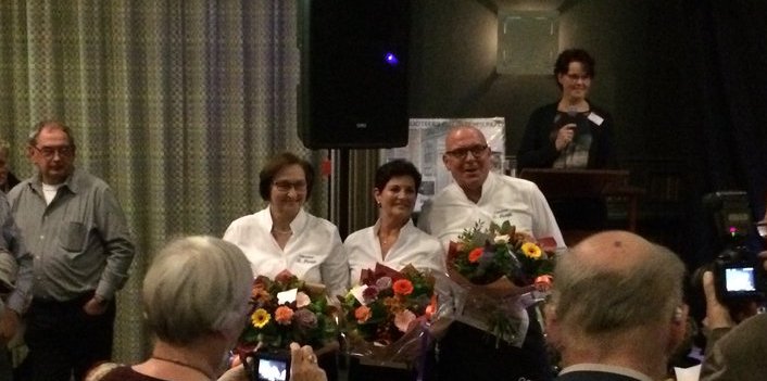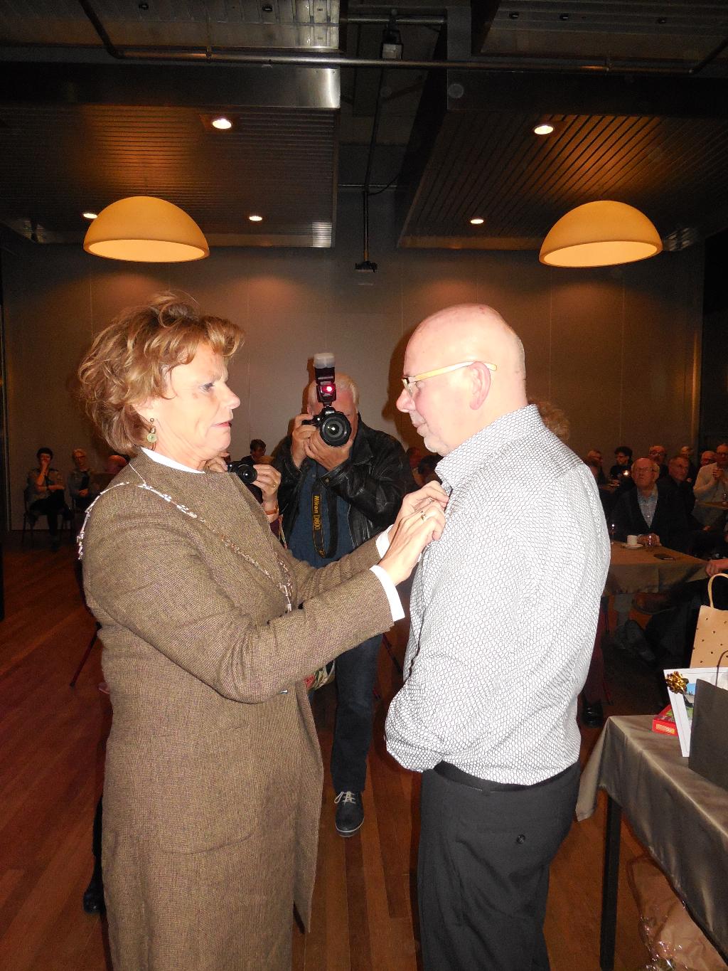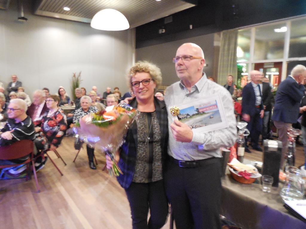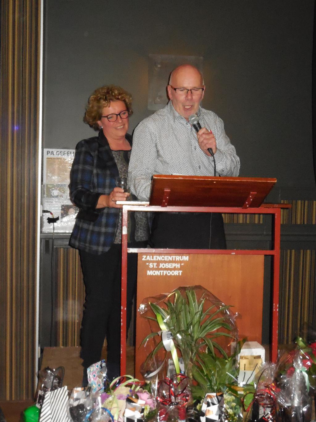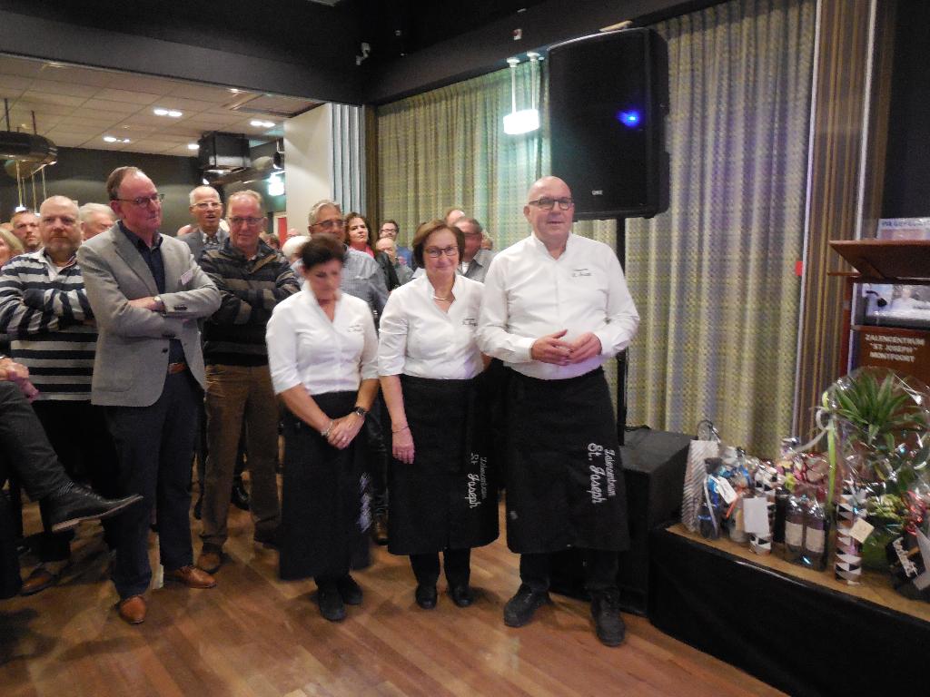 Geplaatst op:12-11-2017 Bijgewerkt op:12-11-2017 15:32 Marcel Peters jubilarisBron: Redactie RSM Aad van der VeenOp vrijdag 10 november trokken ruim 300 tot 400 inwoners naar de soos voor een heel bijzondere gelegenheid. Marcel Peters vierde namelijk zijn 40-jarig jubileum als beheerder van de St. Joseph. Iedereen liet zijn of haar felicitaties gepaard gaan met vele geschenken, van bloemen tot en met flessen alcoholische versnaperingen. Marcel was zichtbaar verrast door de grootte belangstelling en helemaal toen Margriet als voorzitter van de stichting het woord tot hem richtte. Zij prees de inzet van Marcel en zijn gehele team en schetste daarbij al datgene wat hij allemaal had bereikt. Hij is multifunctioneel en politiek onpartijdig en kent vele “bargeheimen”, aldus de voorzitter. Naast Marcel werden ook 3 van zijn trouwe medewerkers Jos, Lina en Cida in het zonnetje gezet omdat zij samen met hem en de rest van het team al vele jaren de soos tot een begrip in Montfoort hebben gemaakt. Tot slot kreeg Marcel het woord, niet eerst nadat hij door burgemeester van Hartskamp tot ereburger van Montfoort was benoemd. Hij bedankte iedereen voor de felicitaties en daarnaast zijn partner Marjolanda en zijn kinderen voor het feit dat zij al die jaren trouw naast hem hebben gestaan.