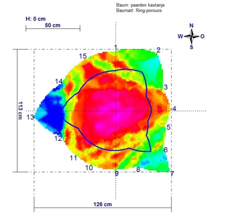 De afbeeldingen hieronder tonen de kwaliteit van de stam van de kleinste boom in 2015 (links) en 2017 (rechts).