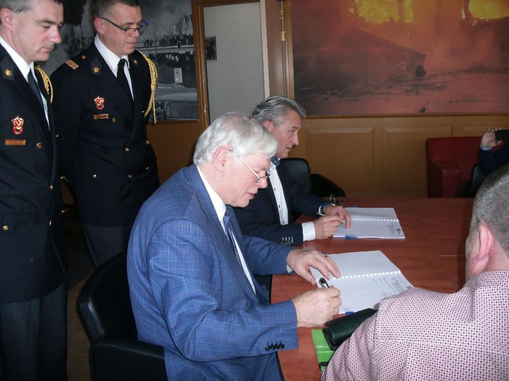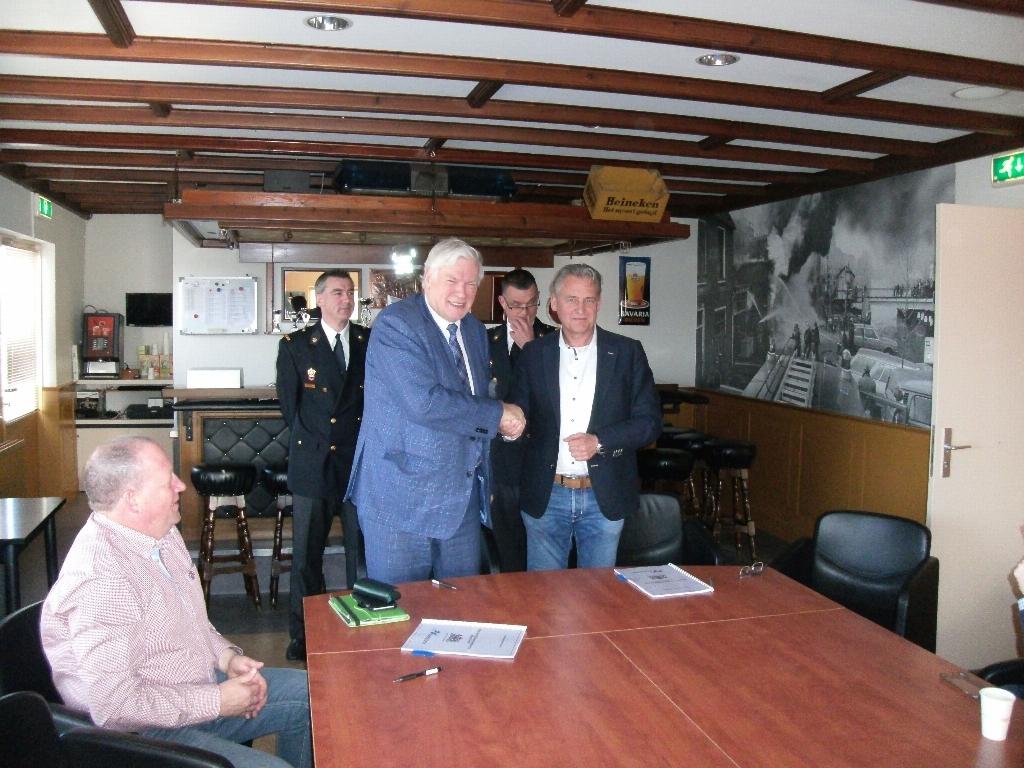 Geplaatst op:14-03-2018 Bijgewerkt op:14-03-2018 17:28 Ondertekening bouwteamovereenkomst brandweerkazerne MontfoortBron: Nettie Kuijer, redactie Radio Stad MontfoortWoensdag 14 maart werden in de brandweerkazerne in Montfoort de papieren ondertekend van de bouwteamovereenkomst door de heer J. Vlaar, wethouder van de gemeente Montfoort, en de heer T. Haagsmans, directeur van bouwbedrijf Vaessen. Vaessen, opgericht in 1929, richt zich specifiek op de ontwikkeling, bouw en het onderhoud van maatschappelijk vastgoed. Op het gebied van de realisatie van sportaccommodaties en brandweerkazernes zijn zij marktleider. Op het gebied van onderwijsaccommodaties bekleden zij een prominente positie. Met het ondertekenen van de bouwteamovereenkomst kan er gestart worden met de sloop van het oude pand en aansluitend de realisatie van een nieuwe kazerne. De huidige brandweerkazerne Montfoort dateert uit 1968 en kan niet zodanig verbouwd worden dat deze aan de huidige wettelijke en brandweer-technische eisen voldoet. Met een aanbouw aan het nieuwe gebouw, op de plaats van het grasveldje, kunnen de verplichte sanitaire ruimtes op de benedenverdieping worden gerealiseerd. Tevens wordt ingegaan op het verzoek van de buurt om meer parkeerplaatsen te realiseren.