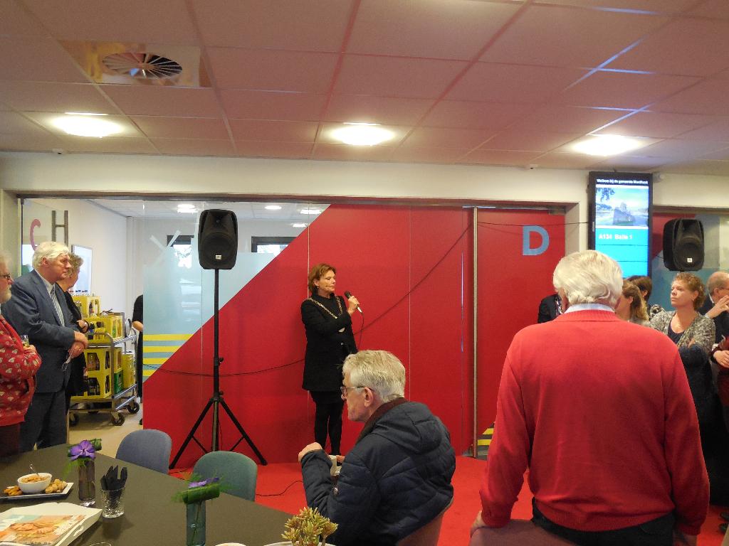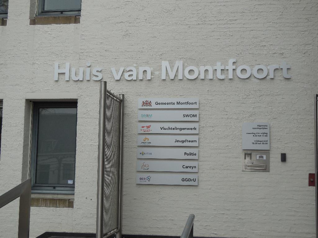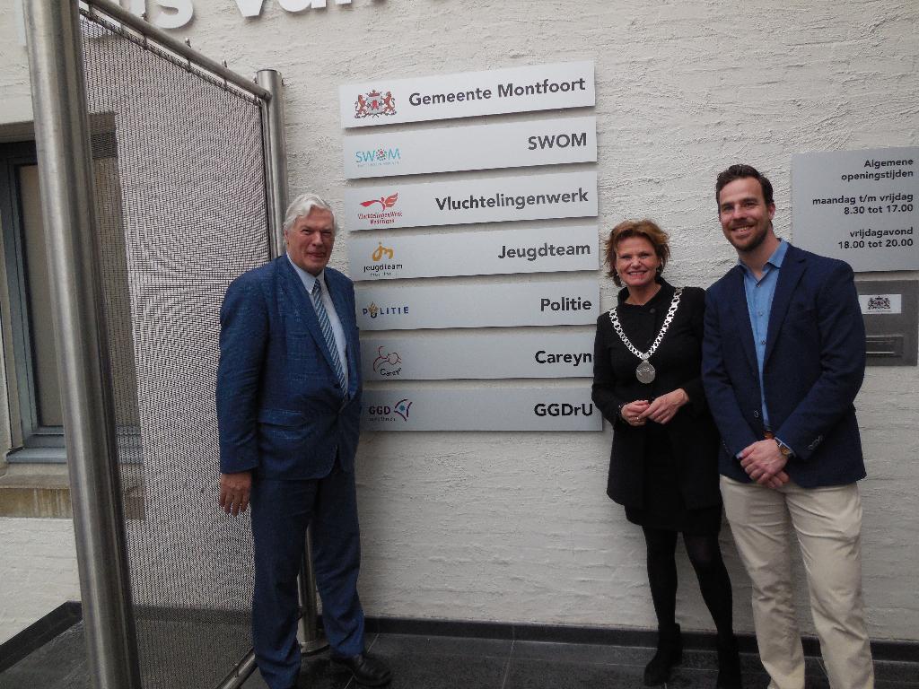 Geplaatst op:16-03-2018 Bijgewerkt op:16-03-2018 15:43 Huis van Montfoort officieel geopendBron: Redactie RSM Aad van der VeenOp 16 maart werd het stadskantoor officieel herbenoemd tot “Huis van Montfoort”. De reden is dat sinds 1 januari de SWOM, GGDrU, jeugdteam Montfoort, Vluchtelingenwerk en Careyn hun intrek hebben genomen in het stadskantoor. De politie was reeds hier gevestigd en blijft dat dus ook. Nadat iedereen inclusief de nieuwe huurders, welkom waren geheten door burgemeester van Hartskamp, gaf zij het woord aan wethouder Vlaar die daarna een woord van dank richtte aan alle betrokkenen, zoals bouwbedrijf de Hoop, het architectenbureau Workshop of Wonders, Dynamx en B&V techniek, was het tijd om de officiële openingshandeling te verrichten. Niet eerst nadat de architect een korte toelichting gaf op het ontwerp. De doelstelling was en is om een meer huiselijke sfeer te creëren, met diverse kleuren en stroken vloerbedekking, maar ook de aankleding van de spreekkamers, waarin de skyline van Montfoort herkenbaar is. Buiten werd door de burgemeester tezamen met de wethouder de naam onthuld en lieten zij met de projectleider van de gemeente het resultaat zien. Er was ook gelegenheid om een rondleiding te krijgen en daar werd dankbaar gebruik van gemaakt. Onder anderen de diverse werkruimten op de begane grond, maar ook die van de vrijwilligers en staf van de SWOM, die op de tweede verdieping zitten kon worden bezichtigd. Op de vraag aan een van de medewerksters waarom er op de begane grond geen toilet voor personen met een beperking was, kwam de reactie dat dit niet de goedkeuring van de architect had gekregen, ondanks hun verzoek. In ieder geval kunnen de nieuwe bewoners met veel plezier naar hun nieuwe werkplek, die ondanks de naam “Huis te Montfoort” in de volksmond nog vele jaren het “stadskantoor” genoemd zal worden.