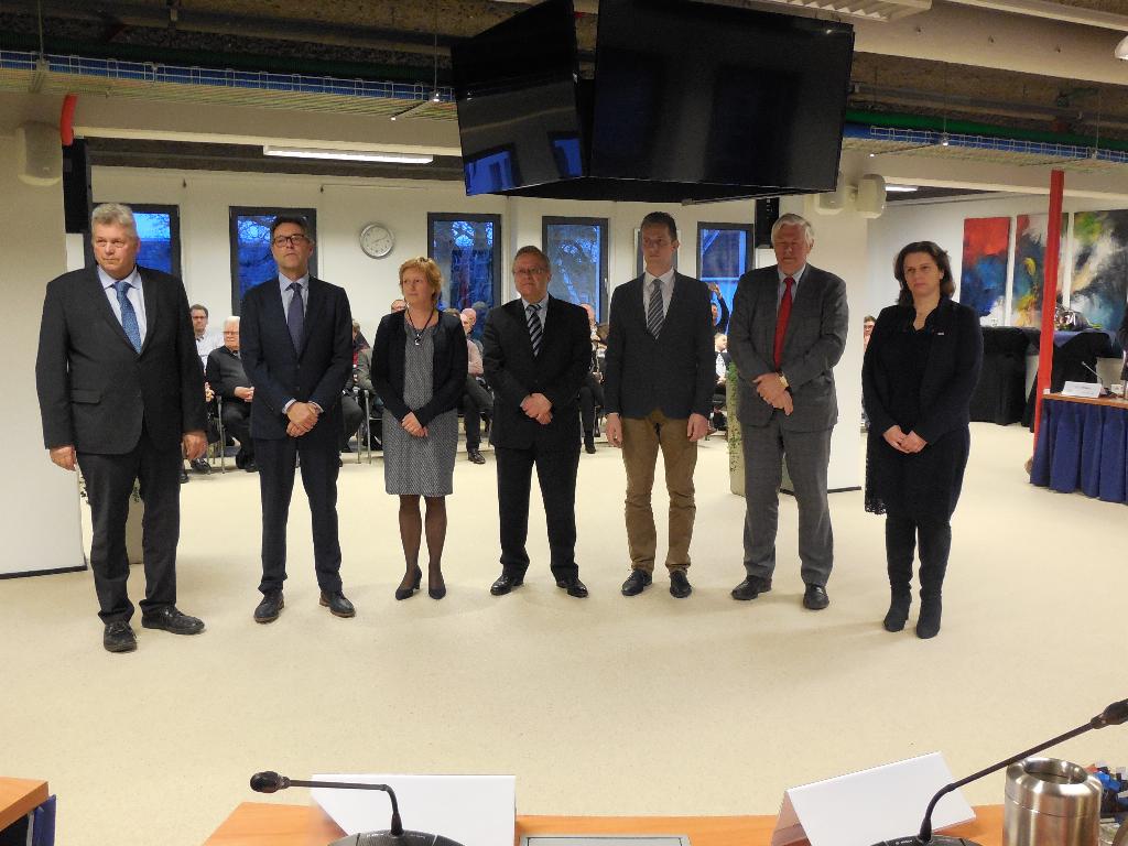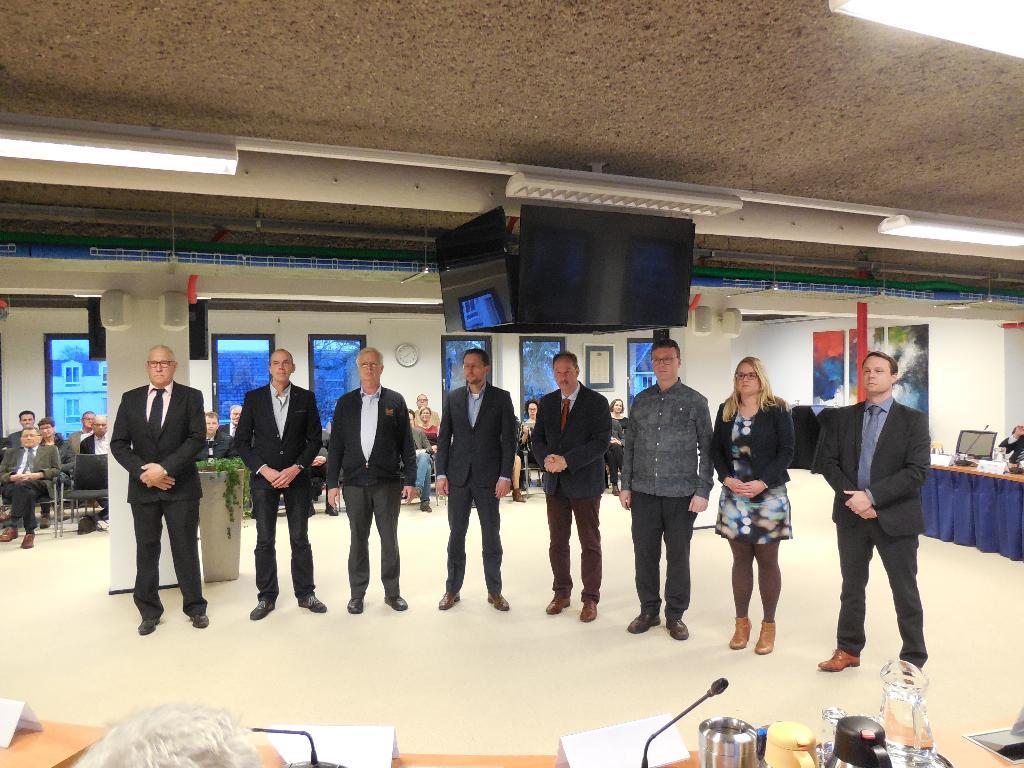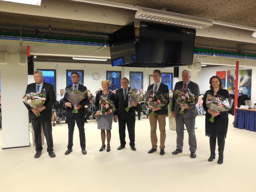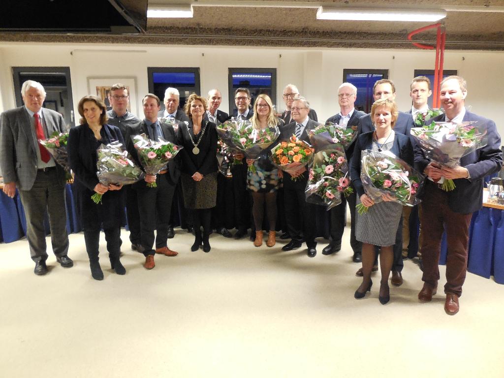 Geplaatst op:29-03-2018 Bijgewerkt op:29-03-2018 20:03 Nieuwe Gemeenteraad geïnstalleerd in MontfoortBron: Redactie RSM Aad van der VeenOp donderdag 29 maart is in Montfoort de nieuwe gemeenteraad geïnstalleerd. De voorzitter opende met een terugblik op afgelopen maandag waar naast het afscheid van de oude raadsleden, de benodigde goedkeuring was verkregen. Hierna kon zij zowel de eed als de belofte afnemen van de nieuwe raadsleden, nadat zij eerst de verklaring voorlas. De eerste groep deed de belofte De tweede groep legde de eed af. Ieder nieuwraadslid ontving tevens een prachtige bos bloemen. Na deze formele handeling, gaf de voorzitter nog een korte toelichting op de zware taak die de raadsleden staan te wachten, maar zij hoopt hierbij dat er ondanks de politieke tegenstellingen voldoende saamhorigheid is en wenst iedereen veel wijsheid als raadslid. De Hr. Van Rooijen (VVD) gaf een korte toelichting over de stand van zaken m.b.t. het formatieproces. De eerste gesprekken hebben plaats gevonden en morgen vindt de tweede sessie plaats. De verslagen zijn straks openbaar. Hierna kon de voorzitter de vergadering om 20.30 uur sluiten en was er gelegenheid alle nieuwe raadsleden te feliciteren en werd er nog een groepsfoto gemaakt.  |