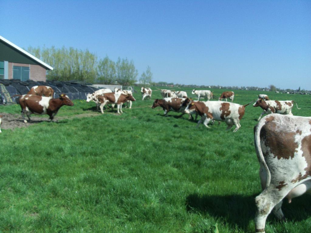 Geplaatst op:21-04-2018 Bijgewerkt op:26-04-2018 10:03 De koeien dansen weer in het grasBron: Nettie Kuijer, redactie Radio Stad MontfoortZaterdag 21 april liet Koos van der de Wind de koeien weer buiten. Velen mochten genieten van het spektakel, dolblije koeien die galoppeerden en rare sprongen maakte in het malse gras. Koos vertelde enthousiast dat alle boeren in Willeskop de koeien lekker naar buiten laten. “Het is beter voor de koeien en het scheelt werk. We hoeven geen eten aan- en geen mest af te voeren. Maar je moet er natuurlijk wel de ruimte voor hebben.” Het maatschap dat Koos samen met zijn vrouw heeft telt nu 60 koeien, 55 daarvan mochten naar buiten. Het jongvee blijft nog even in de stal. De melk gaat naar kaasfabriek de Graafstroom in Bleskensgraaf. Bij de in maart 2018 gehouden wedstrijd tussen kaasmakers van over de hele wereld eindigde De Graafstroom in de laag vet kaas categorie op de eerste plek! 18 Foto's bij dit artikel Bekijk alle 18 foto's die bij dit artikel horen: koeien