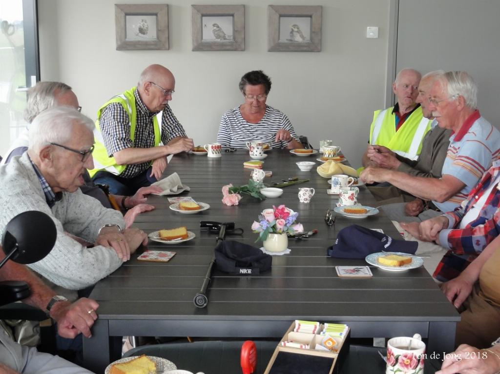 Geplaatst op:18-05-2018 Bijgewerkt op:18-05-2018 12:20 Scootertocht met een pittig windjeBron: Tekst: Truus de Jong / Foto�s: Ton de JongEen pittige windje zorgde nog even voor twijfel of onze rit door kon gaan. Maar het lekker warme zonnetje overwon en we gingen, alweer via een mooie route, dit keer naar Benschop. Daar waren we van harte welkom bij de familie Schep. In hun mooie serre was ruimte genoeg voor iedereen om lekker beschut van het mooie weidse uitzicht te genieten. Koffie en thee met allerlei lekkers werd ons gepresenteerd en ook werd er gezongen voor onze jarige deelnemer Joop van Breukelen. De stemming zat er goed in en Clazien, met assistentie van een goede vriend en vriendin, zorgden dat onze kelen gesmeerd bleven met lekker drankjes en “borrelgarnituur”. Clazien nodigde ons ook uit om met haar mee te gaan naar de vissen. Ze kon leuk vertellen over de vissen en enkelen van ons konden haar helpen met het voeren van ze. Na het “traditionele” dankwoordje van Ton namen we afscheid van Clazien, die ons nu alweer uitnodigde voor volgend jaar! We reden dit keer langs dezelfde weg terug naar Montfoort waar de tractatie van Joop op ons wachtte. Op het terras van Rob en Ronald van de Berg van De Stadskelder hebben we gesmuld van heel speciaal roomijs gemaakt door Daan’s Droomijs! Bedankt Joop namens alle leden van onze club en begeleiders en hetzelfde geldt natùùrlijk voor de hartelijke gastvrijheid van Clazien! 6 Foto's bij dit artikel Bekijk alle 6 foto's die bij dit artikel horen: scoot 16 mei