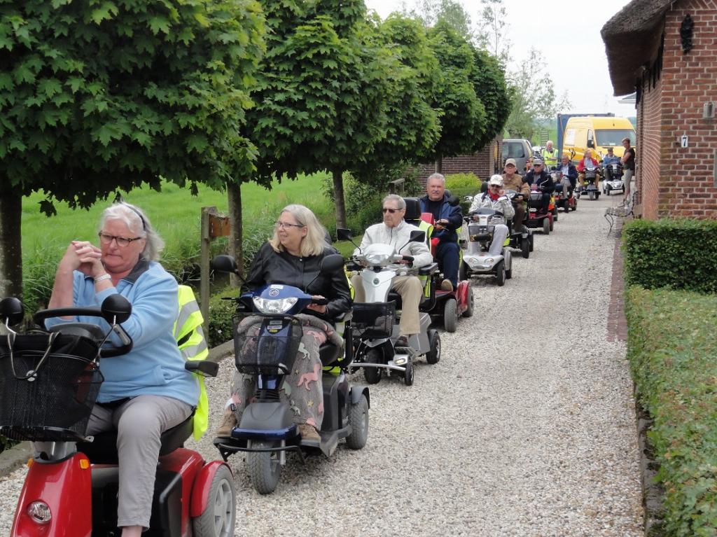 Scootmobielers over de Waardsedijk naar Oudewater