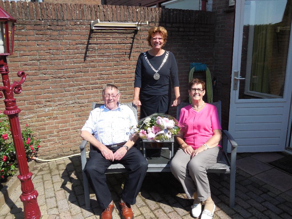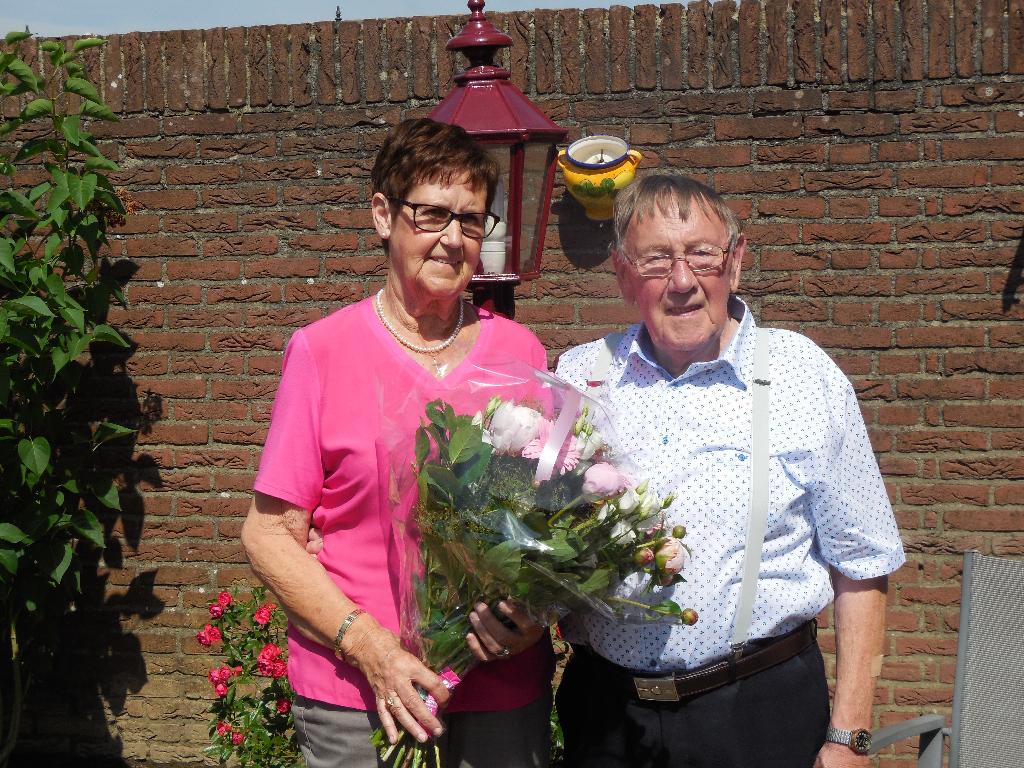 Geplaatst op:31-05-2018 Bijgewerkt op:01-06-2018 07:51 Diamanten bruidspaar van MiltenburgBron: Redactie RSM Aad van der VeenOp 30 mei jongstleden vierden de heer en mevrouw van Miltenburg het feit dat zij voor de wet 60 jaar getrouwd waren. De huwelijkse inzegening vond toentertijd plaats op 10 juni in de Montfoortse Johannes de Doper kerk. Zij ontvingen gisteren zowel van Koning Willem Alexander als de Commissaris van de Koning Dhr. van Beek de persoonlijke felicitaties. Burgemeester van Hartskamp kwam hen 31 mei persoonlijk feliciteren, vergezeld van een prachtige bos bloemen. Beiden zijn geboren en getogen in Montfoort. Adrie (meisjesnaam Vermeij) in de kern en Evert is opgegroeid op Achthoven wat vroeger nog tot IJsselstein behoorde. Zij ontmoeten elkaar op 18-jarige leeftijd op een godsdienstcursus in Montfoort. Ze kregen 3 kinderen, 2 dochters en 1 zoon Wim die sinds 1999 het autobedrijf runt. Hij is de van Miltenburg van de 3de generatie, want Evert heeft de zaak weer van zijn vader overgenomen in 1967. Adrie en Evert verhuisden in 2001 naar de kern Montfoort Evert die thans 84 jaar is, heeft zijn hele werkzame leven het garagebedrijf Van Miltenburg gerund, terwijl Adrie, die bijna 84 is, in eerste instantie na 1 jaar mulo naar de naaischool in Oudewater ging. Daarna heeft zij nog een aantal jaren aan huis kleding hersteld en tussendoor ook nog 4 bruidsjurken gemaakt, waaronder die van haarzelf. Maar het belangrijkste voor beiden was toch wel het bedrijf, waar Adrie naast de administratie allerlei voorkomende werkzaamheden deed. Vooral Evert was daar van s ’morgens vroeg tot s,avonds laat bezig en het gebeurde soms wel dat hij s ’nachts nog auto’s stond te spuiten. Dat ontlokte Adrie de opmerking dat hij dan ook maar beter in de garage kon gaan slapen. De grootste hobby is toch wel oude auto’s, waarmee ze tegenwoordig nog regelmatig korte ritjes maken, samen met Ries en Lida Kemp. Vroeger deden ze aan vele landelijke ritten mee en dat getuigt wel uit het aantal platen die in de garage hangen en de prijzenkast in de gang. Dit blijkt ook wel uit het feit dat ze nog regelmatig in Montfoort te zien zijn in een Datsun Sunny van 1971. Maar ook de vele reizen die zij maakten, ze bezochten o.a. Mexico, Thailand, Japan en Indonesië is iets waar ze nog steeds met heel veel plezier op terug kijken. Binnenkort zal het echtpaar door familie, vrienden en kennissen tijdens een feestelijke avond nog een keer in het zonnetje gezet worden.